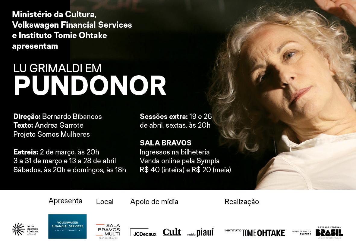 Garrote. Elenco: Lu Grimaldi. Direção: Bernardo Bibancos. Teatro Bravos / Complexo Aché Cultural – R. Coropé, 88. Pinheiros. T. 11 99008.4859. Sábado, 20h e domingo, 18h. R$40. 70min. 10 anos. De 13 a 28/04. Sessões extras: dias 19 e 26/04, 20h.