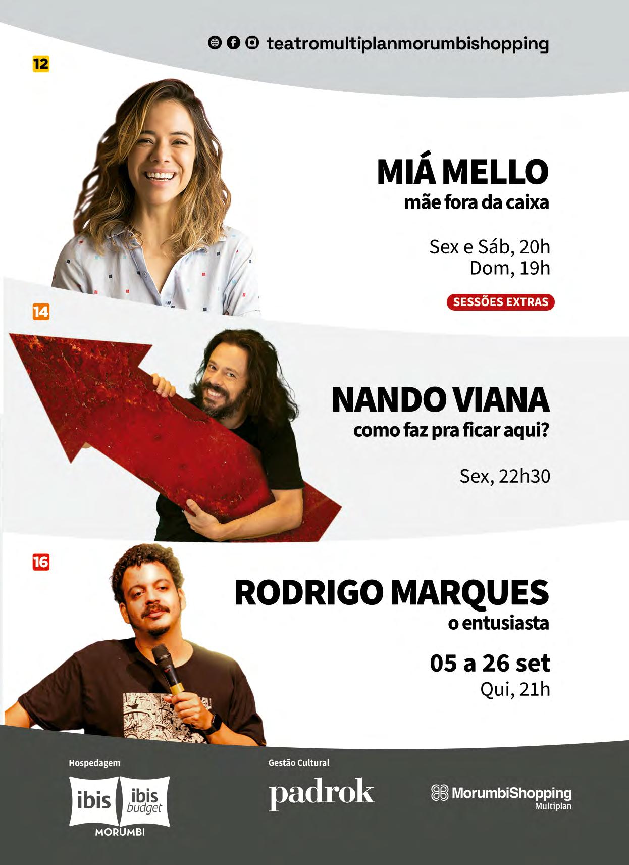 A Ansiedade. Elenco: Nando Viana. Teatro Multiplan MorumbiShopping - Av. Roque Petroni Júnior, 1.089. Piso G2. Jardim das Acácias. T. 11 5183.2800. Sexta, 22h30. R$70. 70min. 14 anos.