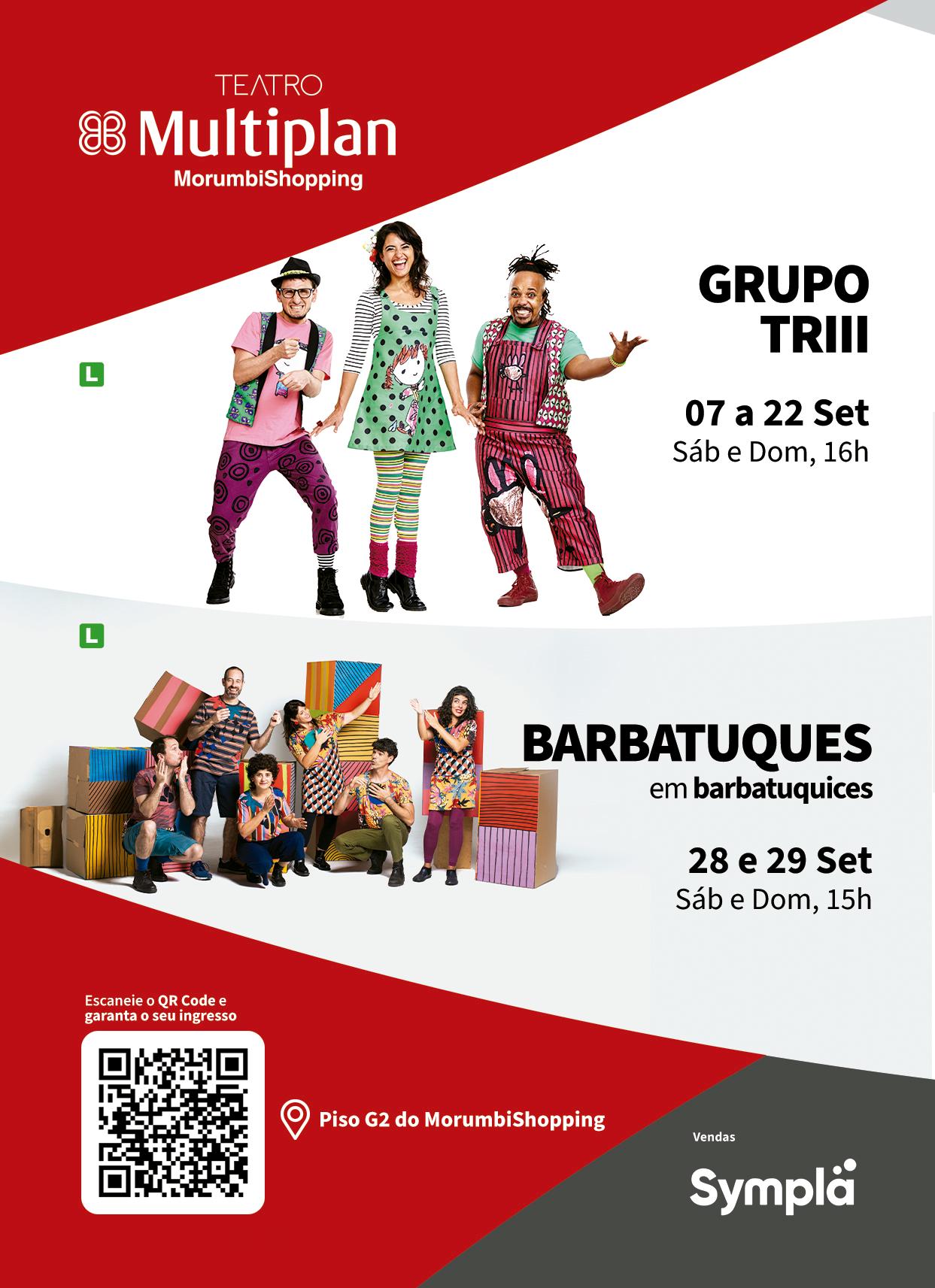 O show “Miudinho” propõe um momento aconchegante e lúdico, com uma sonoridade característica do Triii, com vozes, guitarra, violão e bateria. Além das músicas mais cantadas pelas crianças e toda a família. Com Grupo Triii: Marina Pittier, Fê Stok e Ed Encarnação. Teatro Multiplan MorumbiShopping - Av. Roque Petroni Júnior, 1.089. Piso G2. Jardim das Acácias. T. 11 5183.2800. Dias 07, 08, 21 e 22/09, 16h. R$90. 60min. Livre.