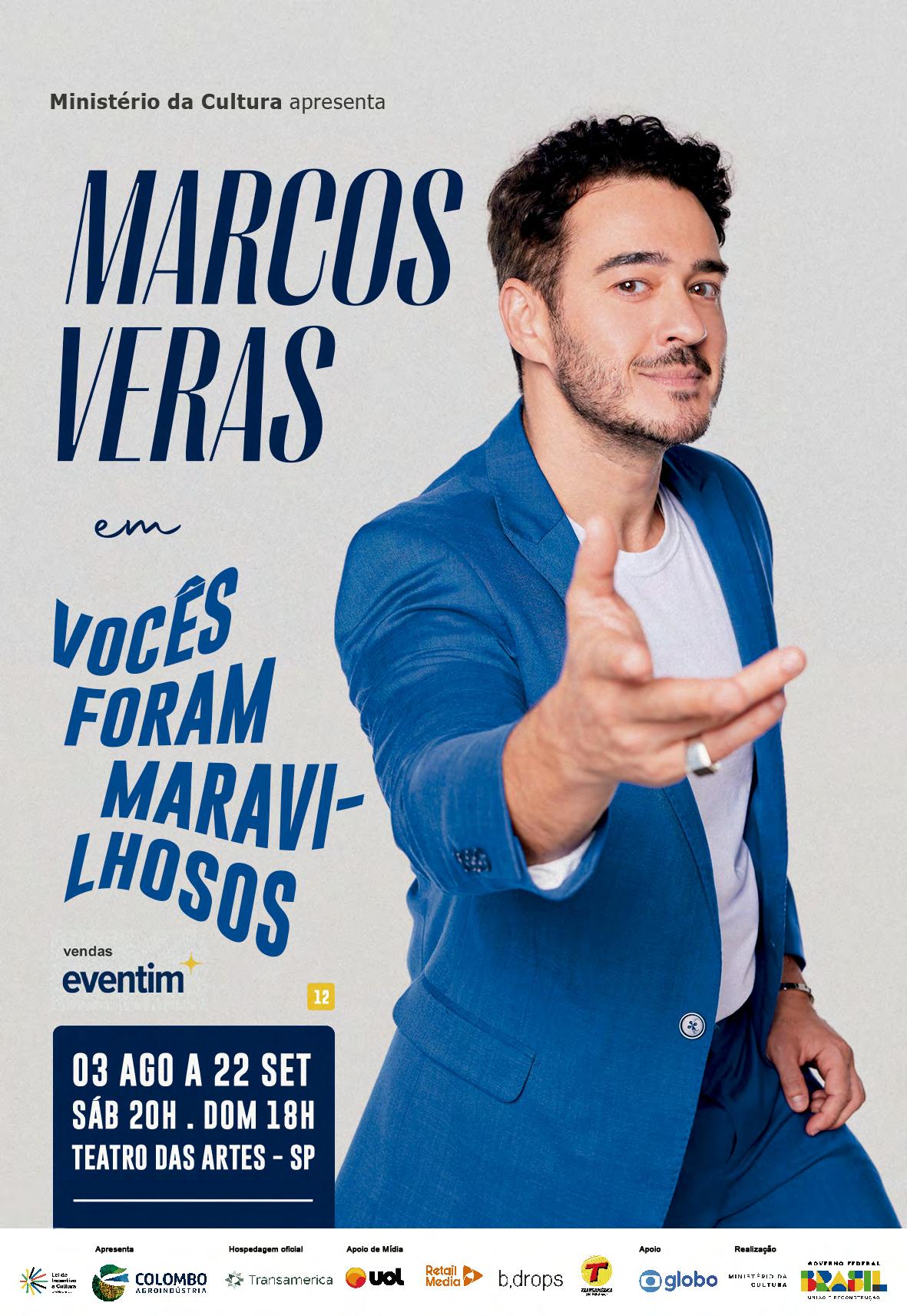 O show mescla elementos da comédia stand-up com peça de teatro e biodrama, onde o ator compartilha histórias engraçadas e emocionantes que viveu ao longo de seus 44 anos de vida e 25 de carreira. No palco, o ator conta, sempre de maneira bem-humorada, por exemplo, como as mortes de seu pai e de sua irmã mudaram seu jeito de ver a vida, e como foi a sua primeira vez. Texto e atuação: Marcos Veras. Direção: Leandro Muniz. Teatro das Artes / Shopping Eldorado –Av. Rebouças, 3970. Pinheiros. Sábado, 20h; domingo, 18h. A partir de R$40. 12 anos. Até 22/09.