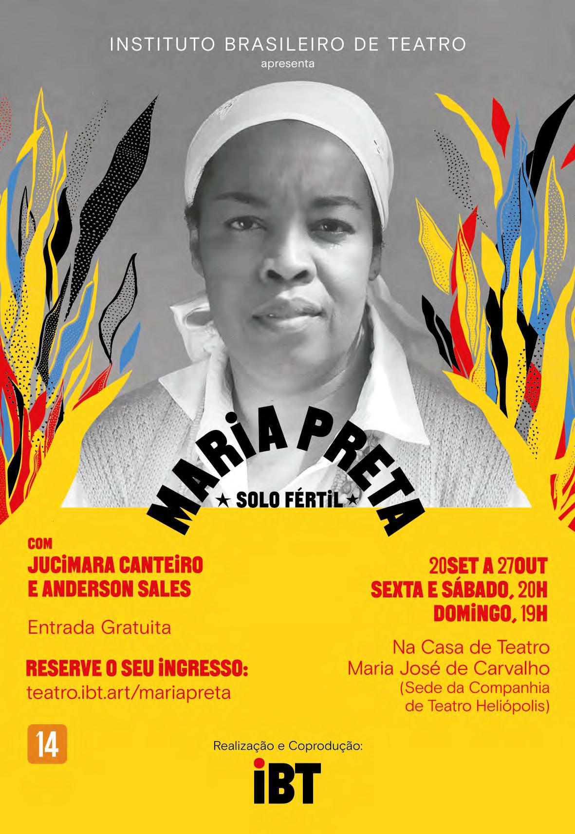O alinhavo de três gerações de mulheres pretas da mesma família. Por meio da voz do teatro, e pelo direito ao sensível, toda a comunhão, benquerença e desafios partilhados por avó, mãe e filha são narrados em dois territórios de origem sagrada: o terreiro e o terreno - lugares onde a memória se revela como força-motriz de acontecimentos e passagens do corpo familiar e social. Honrar Dona Maria Preta nos palcos é o traçado de uma significação possível e aproximada da ideia de ancestralidade no Brasil. A ancestralidade está ao alcance das mãos: reside em nossas mães, avós, tias, mulheres que com a forja do próprio resistir produzem os símbolos da liberdade comunitária em um país que a um só tempo é ruína e futuro. Dramaturgia: Jucimara Canteiro e Paloma Franca Amorim. Orientação de dramaturgia: Ave Terrena. Elenco: Jucimara Canteiro e Anderson Sales. Direção: Luciano Mendes de Jesus. Casa de Teatro Maria José de Carvalho - R. Silva Bueno, 1533. Ipiranga. T. 11 2060.0318. Sexta e sábado, 20h; domingo, 19h. Gratuito (reservar ingressos no site teatro. ibt.art/mariapreta. O ingresso com o QR Code deve ser apresentado no dia do espetáculo). 14 anos. 90min. Estreia 20/09.