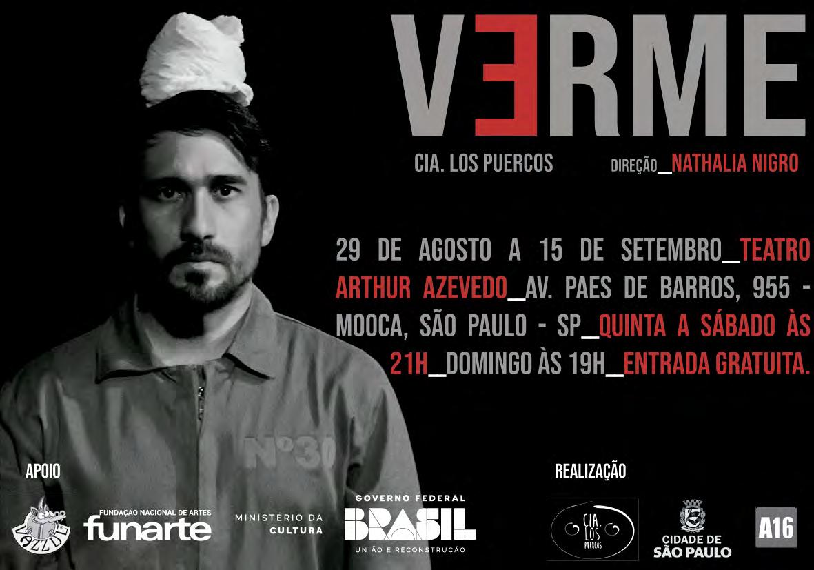 VUm relato auto ficcional documental que traz como forma de denúncia sua experiência de 7 anos no militarismo, presenciando, sofrendo agressões e traumas. “Verme” é uma ferida em aberto, um desabafo, um grito que precisa ser dito e ecoado. De: Cia Los Puercos. Texto: Luiz Campos. Elenco: Eluane Fagundes, Felipe Lima, Giovanna Marcomini e Luiz Campos. Direção: Nathalia Nigro. Teatro Arthur Azevedo - Av. Paes de Barros, 955. Alto da Mooca. Quinta a sábado, 21h; domingo, 19h. Gratuito (retirar ingressos com 1h antes na bilheteria). 80 min. Até 15/09.