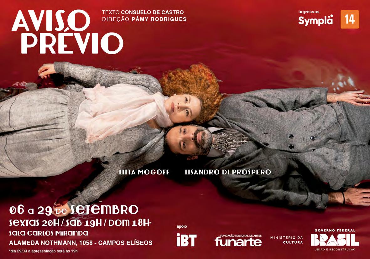 O texto desafia, inspira e revela os momentos cruciais que precedem o inevitável: o fim das relações, das funções sociais e até da própria existência. Em cena um casal em diferentes situações, explorando com maestria o ciclo opressor contra as mulheres, no qual nossa sociedade foi construída. Dramaturgia: Consuelo de Castro. Elenco: Litta Mogoff e Lisandro Di Prospero. Direção: Pâmy Rodrigues. Complexo Cultural Funarte / Sl. Carlos Miranda - Al. Nothman, 1058. Campos Elíseos. T. 11 95078.3004. Sexta, 20h; sábado, 19h; domingo, 18h. Dia 29/09, 19h. R$30. 70min. 14 anos. De 06 a 29/09.