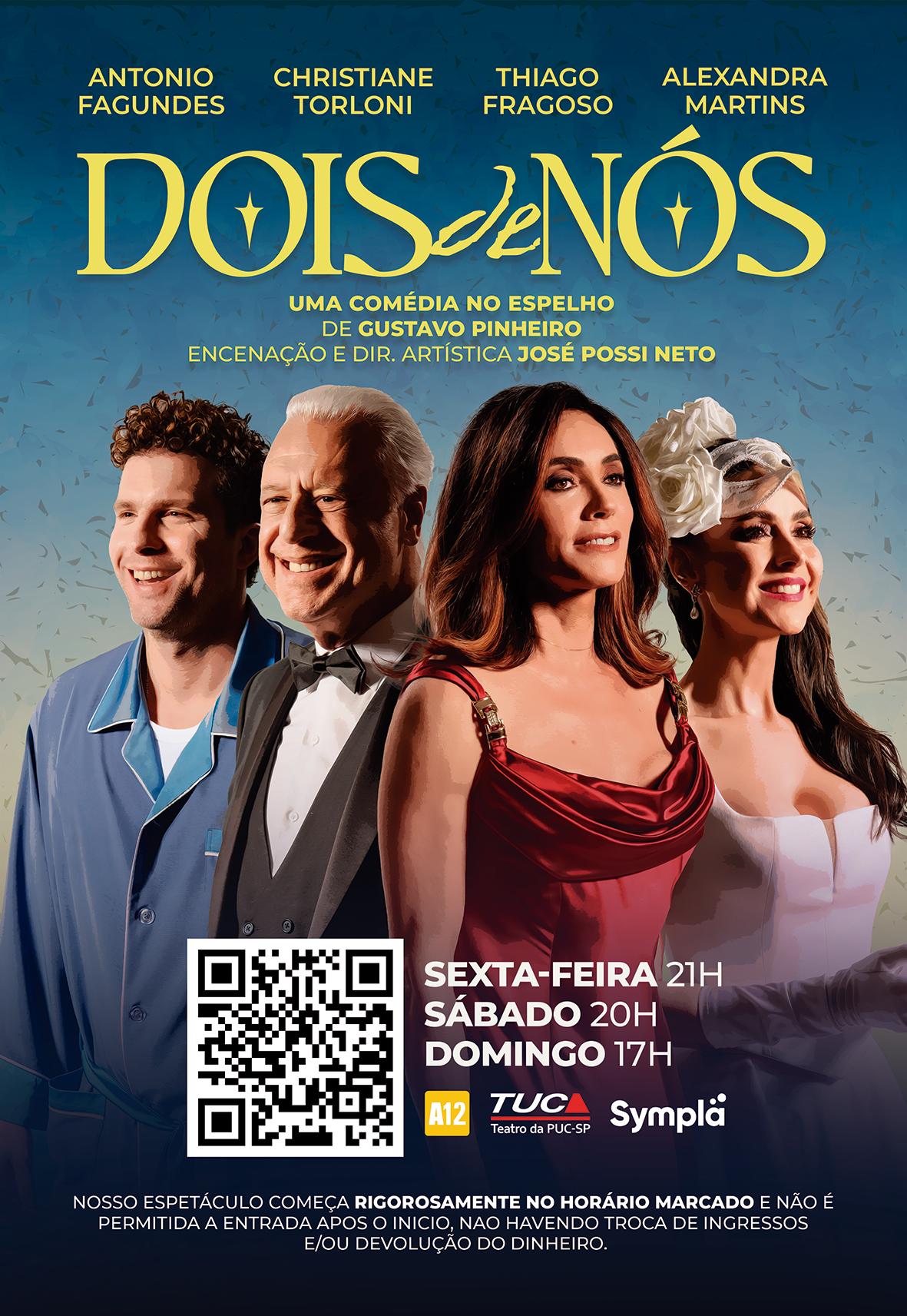 Dois casais de gerações diferentes se encontram em um quarto de hotel. Segredos e mentiras começam a ser revelados e trazem à tona um divertido turbilhão de sentimentos, com muita emoção e desafios, que mudarão a vida deles para sempre. Texto: Gustavo Pinheiro. Elenco: Antonio Fagundes, Christiane Torloni, Thiago Fragoso e Alexandra Martins. Direção: José Possi Netto. TUCA / Teatro da PUC-SP – R. Monte Alegre, 1024. Perdizes. T. 11 3670.8455. Sexta, 21h; sábado, 20h; domingo, 17h. R$160. 90min. 12 anos. Estreia 05/09.