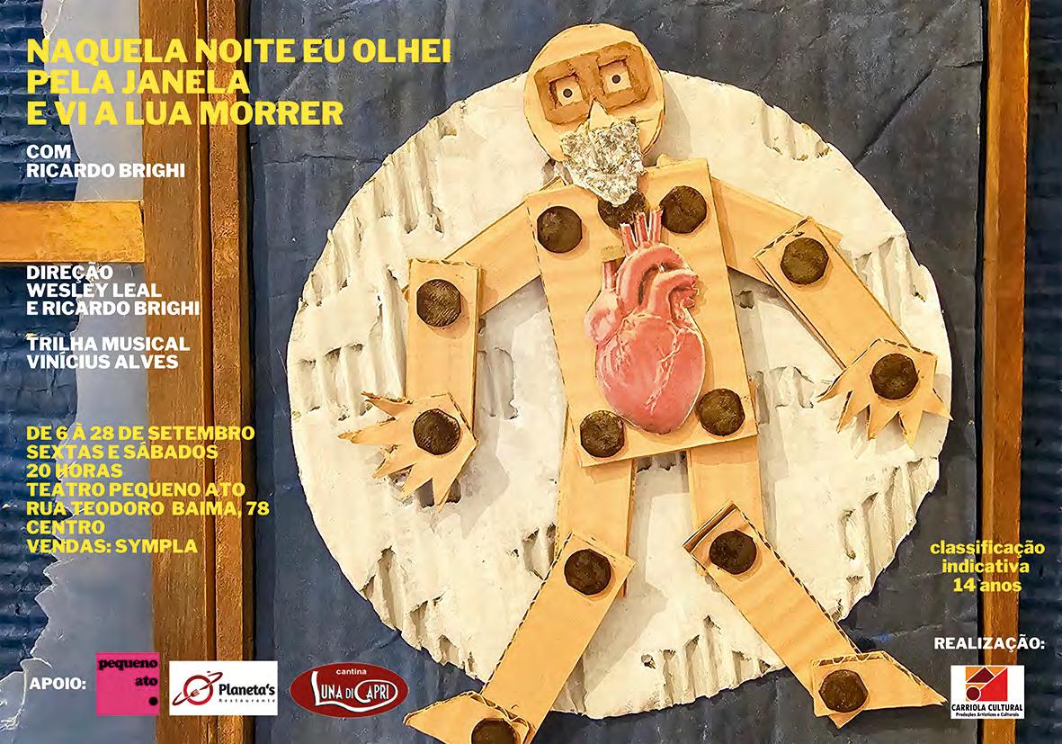 Algumas lembranças de um homem de 60 anos, gay e solitário. Numa tarde, enquanto arruma a casa, ele recorda o passado, questiona o presente e duvida do futuro. Trata-se de uma peçadenúncia sobre o envelhecer do gay numa comunidade onde o ideal de beleza e juventude são intensos demais. Texto e elenco: Ricardo Brighi. Direção: Wesley Leal e Ricardo Brighi. Teatro Pequeno Ato - R. Teodoro Baima, 78. Centro. T. 11 99101.6592. Sexta e sábado, 20h. R$40. 50min. 14 anos. De 06 a 28/09.