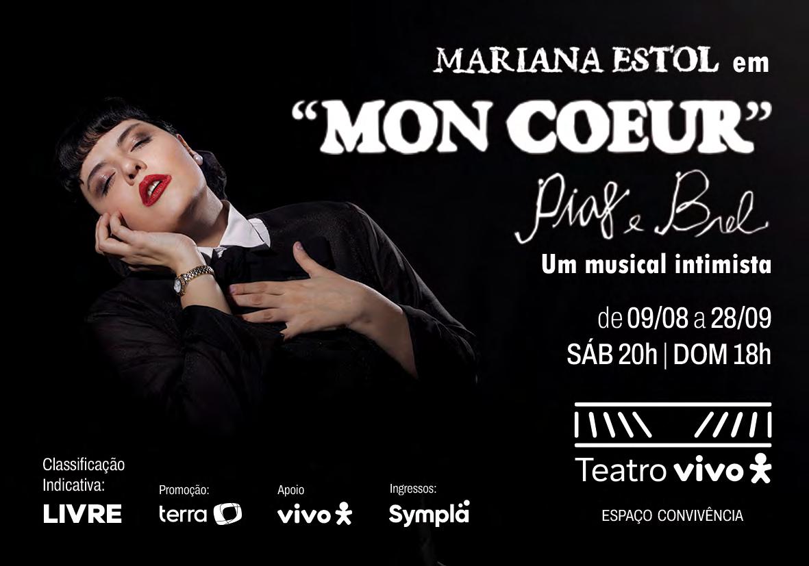 narratividade semibiográfica e da interpretação ao vivo de 15 canções tradicionais francófonas conhecidas como Chanson. Roteiro e elenco: Mariana Estol. Direção: Elias Andreato. Teatro Vivo / Espaço Convivência - Av. Chucri Zaidan, 2460. Morumbi. T. 11 3279.1520. Sábado, 20h; domingo, 18h. R$80. 70min. Livre. Estreia 09/08.