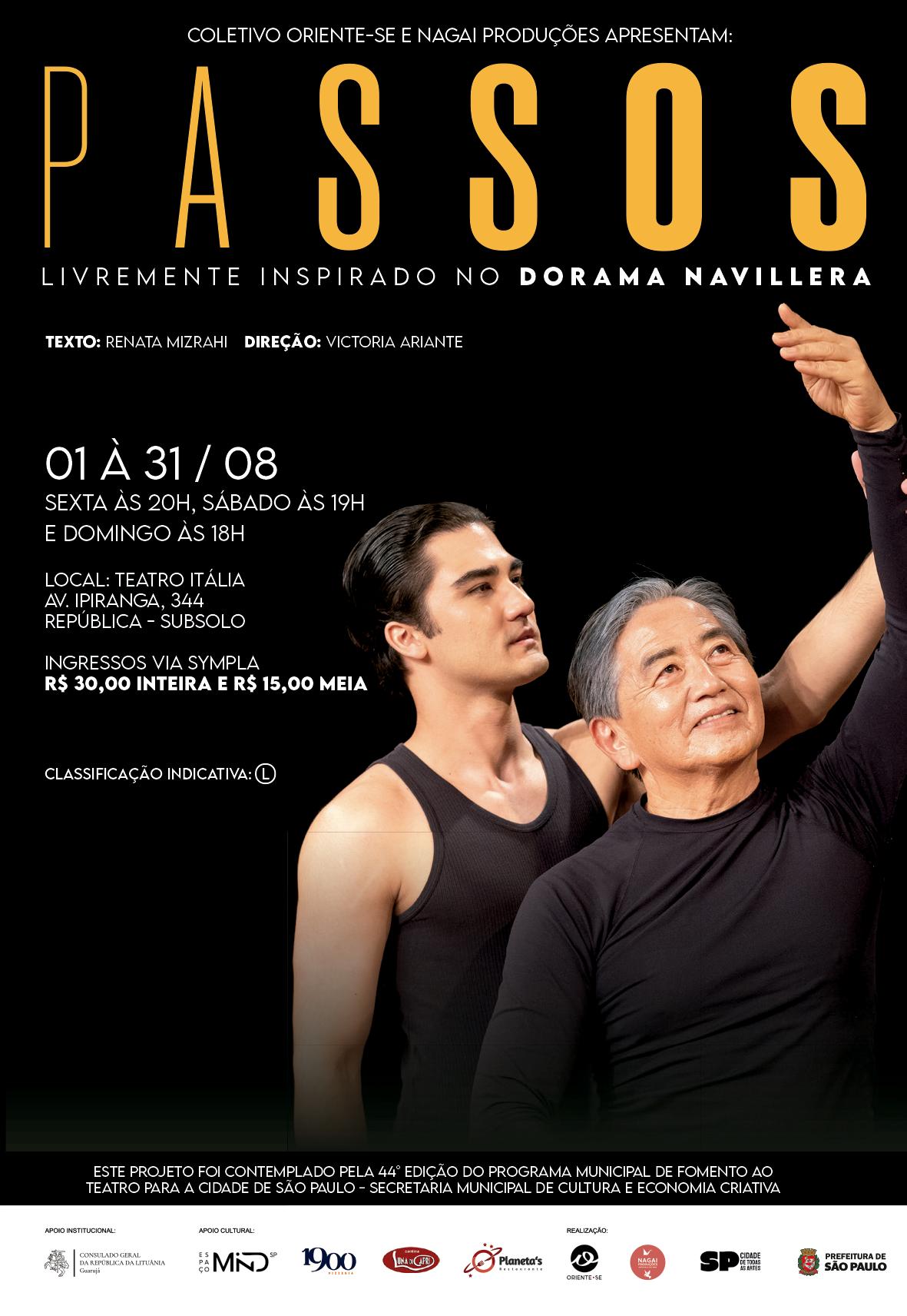 da idade, enfrenta preconceitos de seu próprio professor, que o provoca constantemente sobre seus limites físicos. Com: Coletivo Oriente-se. Texto: Renata Mizrahi. Elenco: Edson Kameda, Caio Mutai, Gilberto Kido, Winnie Moriyama e Emilia Kiyohara. Direção: Victoria Ariante. Teatro Itália - Av. Ipiranga, 344. República. T. 11 5468.8382. Sextas, 20h; sábado, 19h; domingo, 18h. R$30. 80min. 10 anos. De 01 a 31/08.