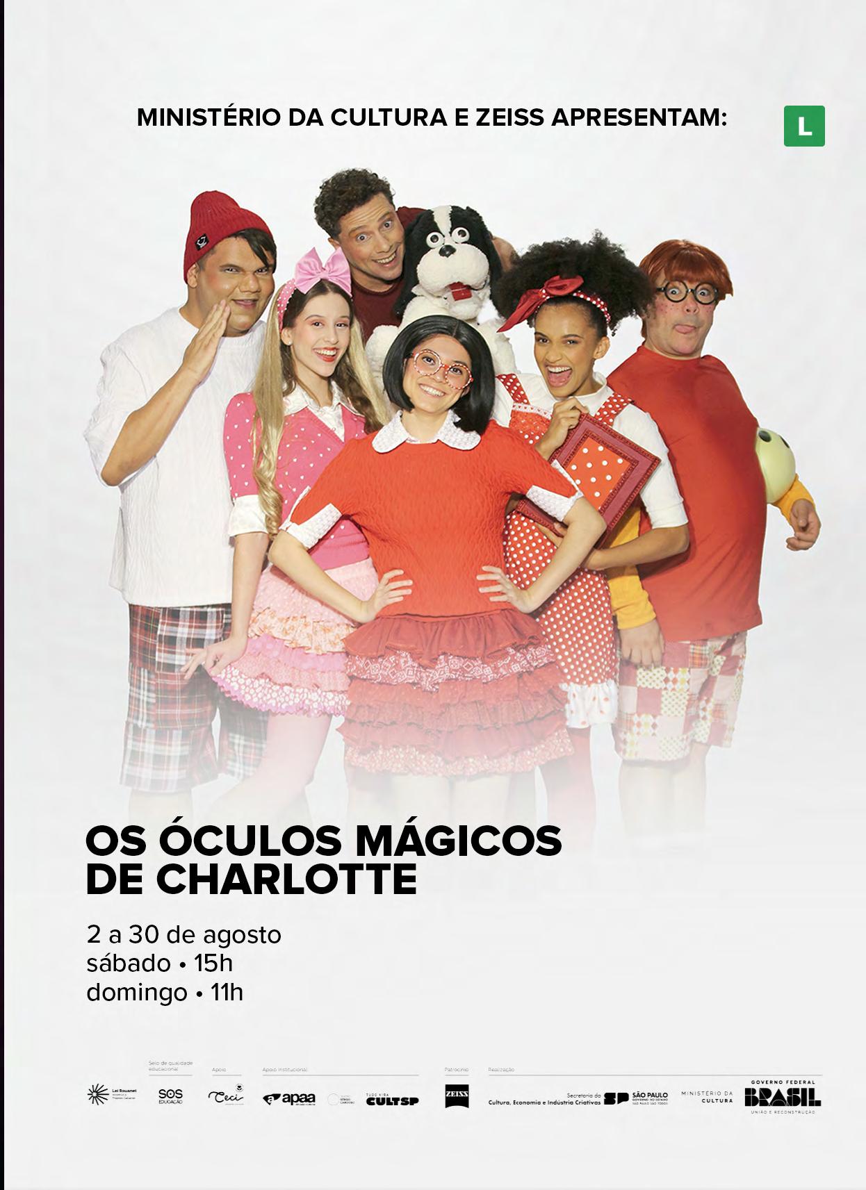 OCharlotte perde um dente de leite e, em troca, ganha da Fada Belle um par de óculos mágicos. A partir daí, ela passa a enxergar o mundo como ele poderia — e deveria — ser: mais gentil, mais colorido, mais justo. Canções/letras: Miguel Falabella. Idealização: Filipe Fratino. Dramaturgismo e direção: Juliana Sanches. Elenco: Niccole Lara, Adriano Tunes, Ana Lamana, Lakis Farias, Gui Giannetto, Paula Tavares, Allira e Nestor Fonseca. Teatro Sérgio Cardoso / Sl. Paschoal Carlos Magno - R Rui Barbosa, 153. Bela Vista. T. 11 3288.0136. Sábado, 15h; domingo, 11h. R$40 e Dias 06, 07, 14 e 30/08 Gratuito (retirar ingressos com 1h antes na bilheteria). 60min. Livre. De 02 a 30/08. Dia 09/08 não haverá apresentação.