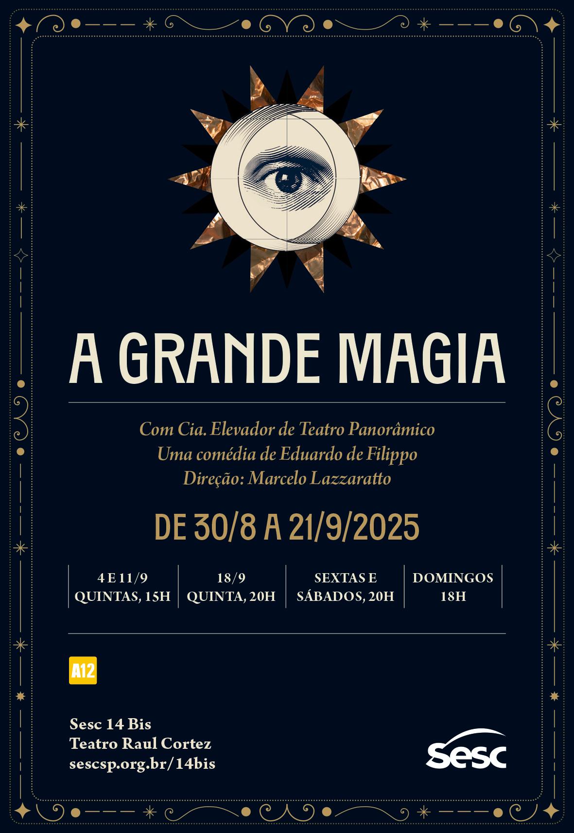 Comédia escrita em 1948, transita entre o real e o fantástico para abordar a frágil fronteira entre verdade e ilusão. Em meio a um ambiente de veraneio, um número de mágica provoca consequências inesperadas e leva os personagens a confrontarem suas crenças, desencadeando reflexões sobre os limites entre realidade e fantasia. Texto: Eduardo de Filippo. Com: Cia. Elevador de Teatro Panorâmico. Direção: Marcelo Lazzaratto. Sesc 14 Bis - R. Dr. Plínio Barreto, 285. Bela Vista. T. 3016.7700. Sexta e sábado, 20h; domingo, 18h. Dias 04 e 11/09, 15h; 18/09, 20h. R$60. 120min. 12 anos. Até 21/09.