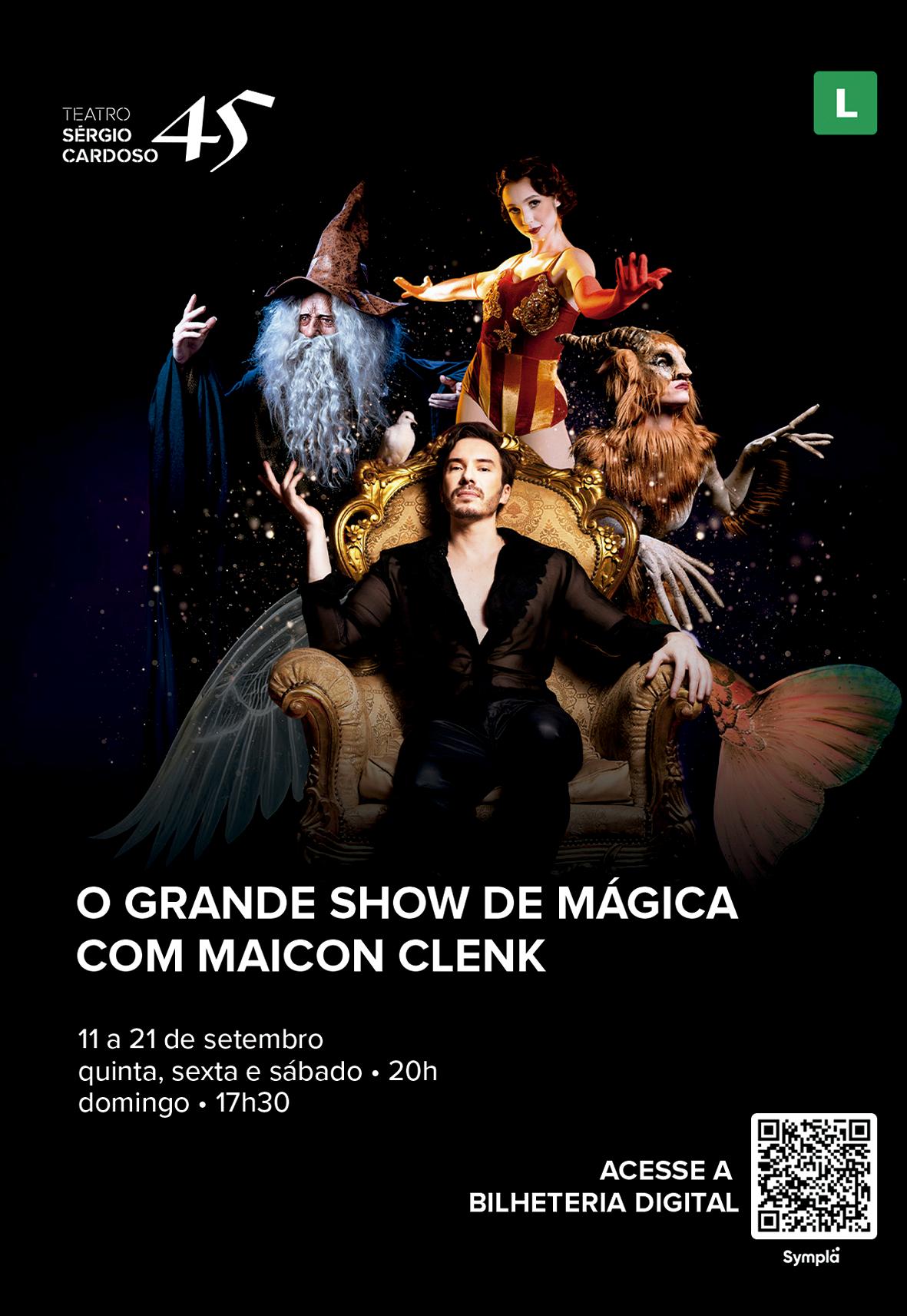 Espetáculos de ilusionismo reúne mais de 20 grandes ilusões mundialmente famosas, como levitações, teletransportes, aparições e metamorfoses. A obra tem como tema a história do ilusionismo. Elenco: Maicon Clenk. Teatro Sérgio Cardoso / Sl. Nydia Lícia - R. Rui Barbosa, 153. Bela Vista. T. 3882.8080. Quinta, sexta e sábado, 20h; domingo, 17h30. De R$60 a R$360. 90min. 06 anos. De 11 a 21/09.