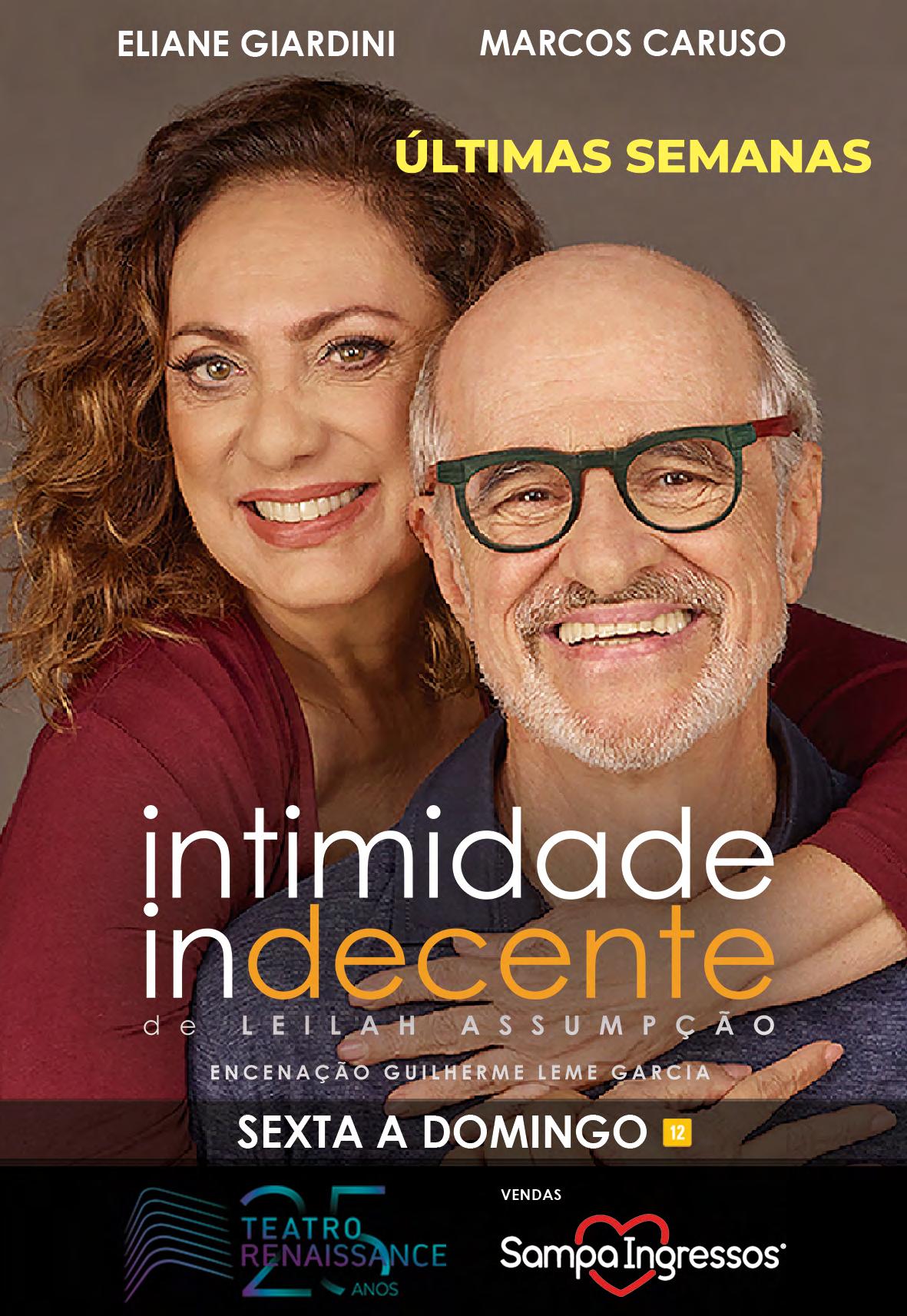 Um casal sessentão desgastado pela mesmice da rotina. O desejo esfriou, o sexo falta e a implicância mútua sobra. Ávidos por novas experiências, entendem que não há mais porque ficar juntos. Acontece que, como num efeito bumerangue, a vida insiste em devolver um ao outro. E é nessas idas e vindas que, aos poucos, os dois descobrem-se os maiores cúmplices. Texto: Leilah Assumpção. Elenco: Eliane Giardini e Marcos Caruso. Direção: Guilherme Leme Garcia. Teatro Renaissance – Al. Santos, 2233. Jardim Paulista. T. 3069.2286. Sexta, 21h; sábado, 19h; domingo, 17h. R$160. 90min. 14 anos.