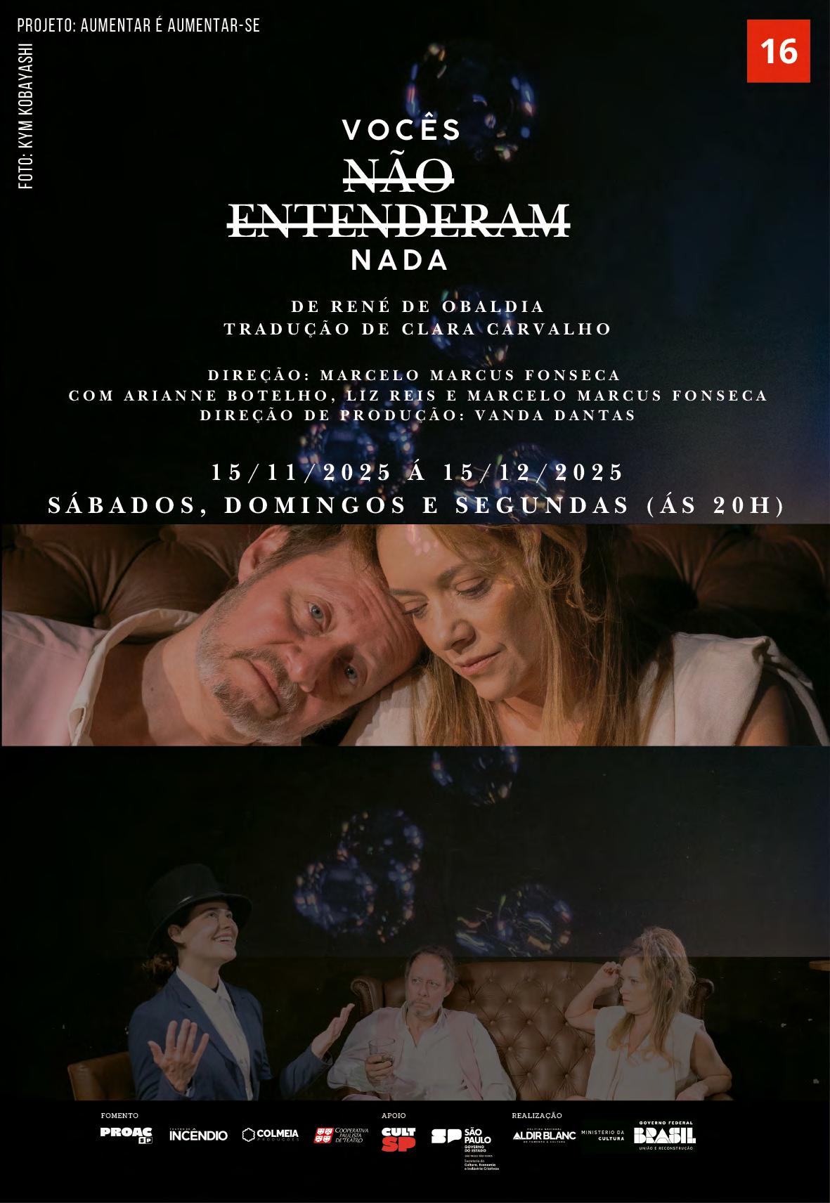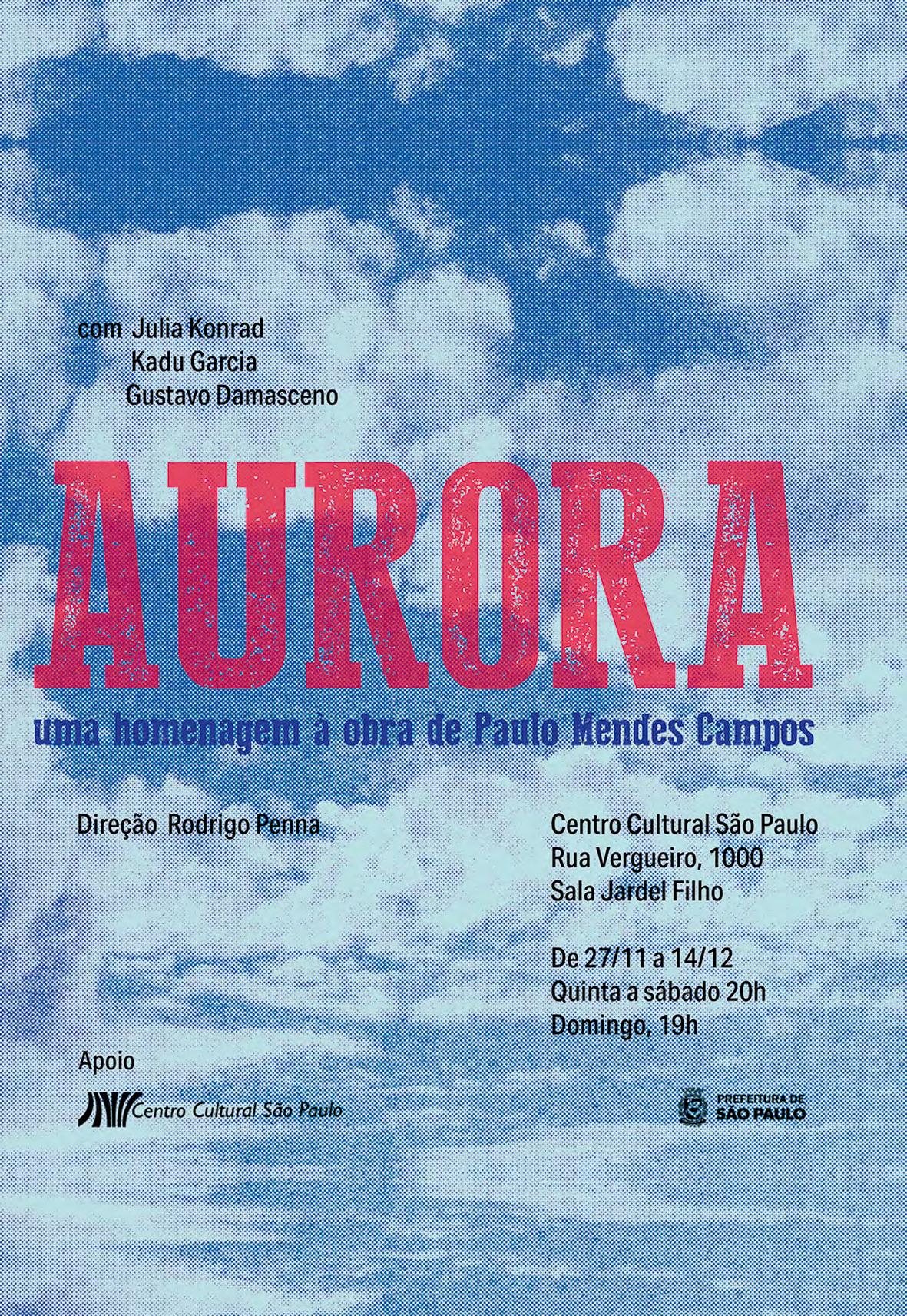 Traz um pouco de Minas e de Rio de Janeiro, um Brasil de poetas, cancioneiros, da Bossa Nova, os românticos! O espetáculo conta e celebra a vida e a obra do grande escritor mineiro, Paulo Mendes Campos. Crônicas inteiras, fragmentos, cartas, as colunas dos periódicos, seus amigos, amores, sua prosa tão poética. Adaptação, concepção e direção: Rodrigo Penna. Elenco: Júlia Konrad, Kadu Garcia e Gustavo Damasceno. Centro Cultural São Paulo - R. Vergueiro, 1000. Liberdade. T. 3397.4002. Quinta a sábado, 20h; domingo, 19h. Gratuito (retirar ingressos diretamente no site do CCSP e presencialmente. A retirada presencial acontece a partir das 14h do dia anterior à sessão). 80min. 12 anos. Até 14/12.