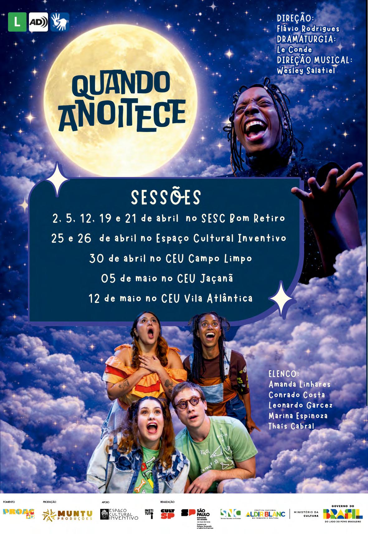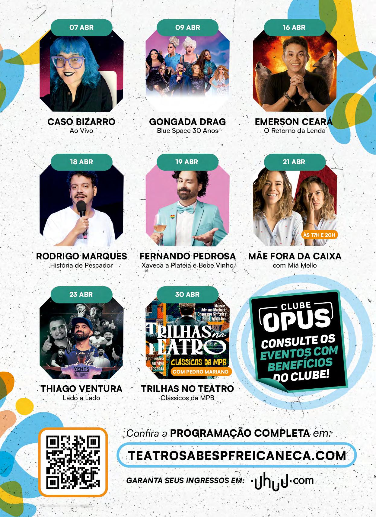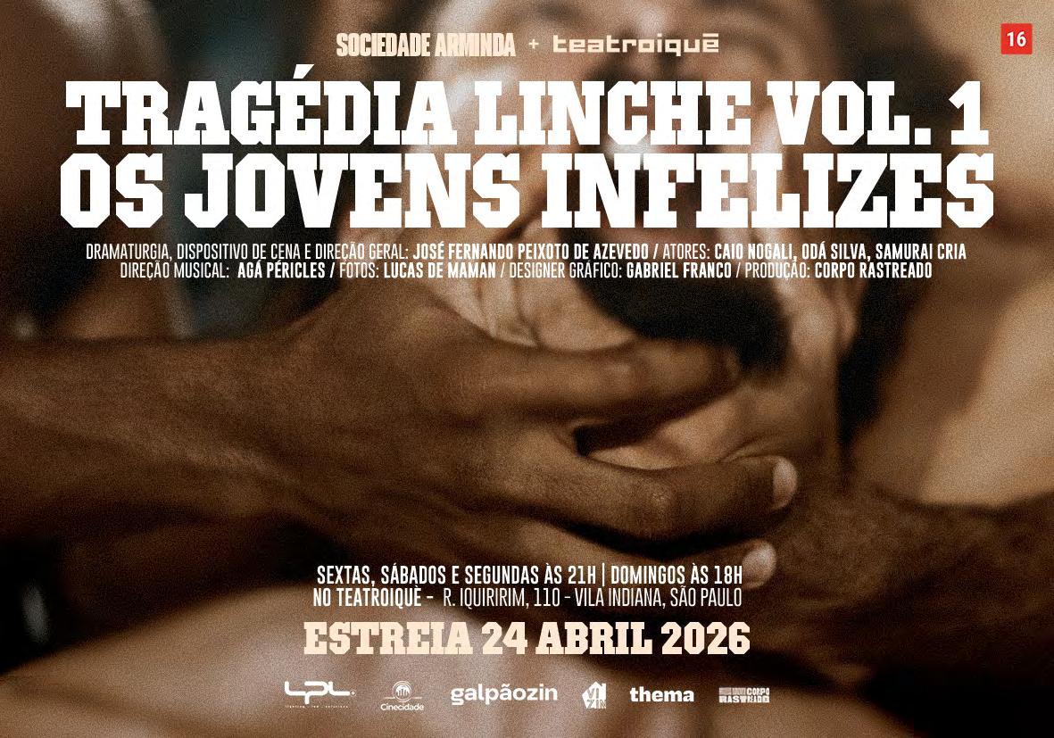 cultural atravessado por desigualdades estruturais. Poder, racismo, desejo, contradição e permanência estruturam a encenação. Idealização e dramaturgia: Toni Brandão. Elenco: Larissa Noel, Anastácia Lia, Arthur Berges, Adriano Tunes, Fernando Rubro, Luciana Ramanzini, Luciana Carnieli, Hipólyto, Maria Antônia Ibraim, Moara Sacchi e Will Sancar. Direção: Débora Dubois. Direção Musical: Cláudia Elizeu. Sesc 14 Bis / Teatro Raul Cortez - R. Dr. Plínio Barreto, 285. Bela Vista. T. 3016.7700. Quinta, 15h e 20h; sexta e sábado, 20h; domingo e feriado, 18h. R$70. 12 anos. Até 21/04.