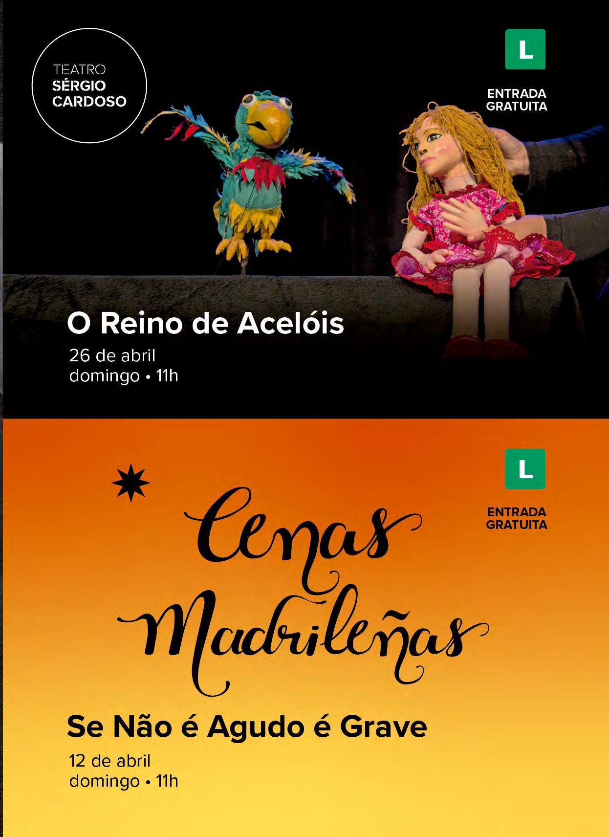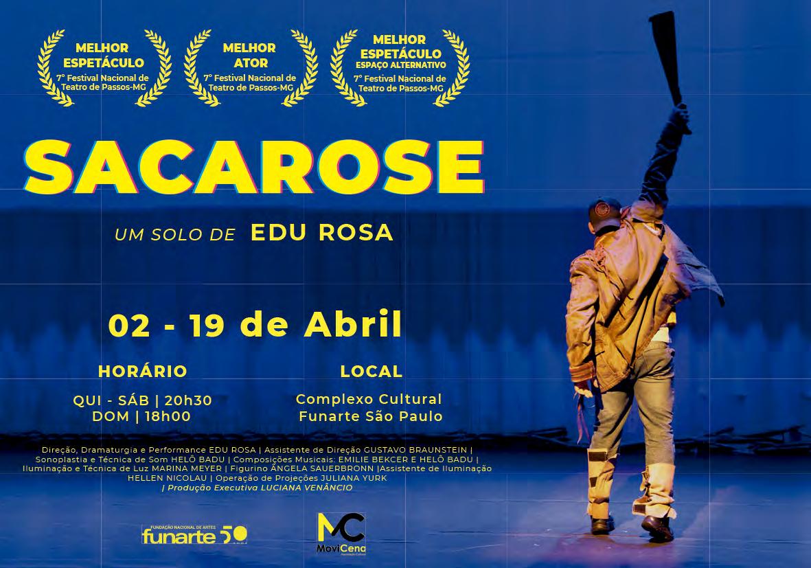 Novela cênica sobre a intolerância e o ódio no canavial nordestino. Texto, letras e direção: Newton Moreno. Elenco: Paulo de Pontes, Tay Lopez, Kátia Daher, Gabi Britto, Rebeca Jamir e Jorge de Paula. De 03 a 12/04, sexta e sábado, 20h; domingo, 19h - Teatro Arthur Azevedo - Av. Paes de Barros, 955. Alto da Mooca. T.2604.5558. De 16 a 19/04 e 30/04 a 03/05 - quinta a sábado, 20h; domingo, 19h - Teatro Alfredo Mesquita - Av. Santos Dumont, 1770. Santana. T.2221.3657. Gratuito (retirar ingressos com 1h antes na bilheteria ou pelo Sympla). 90min. 14 anos.