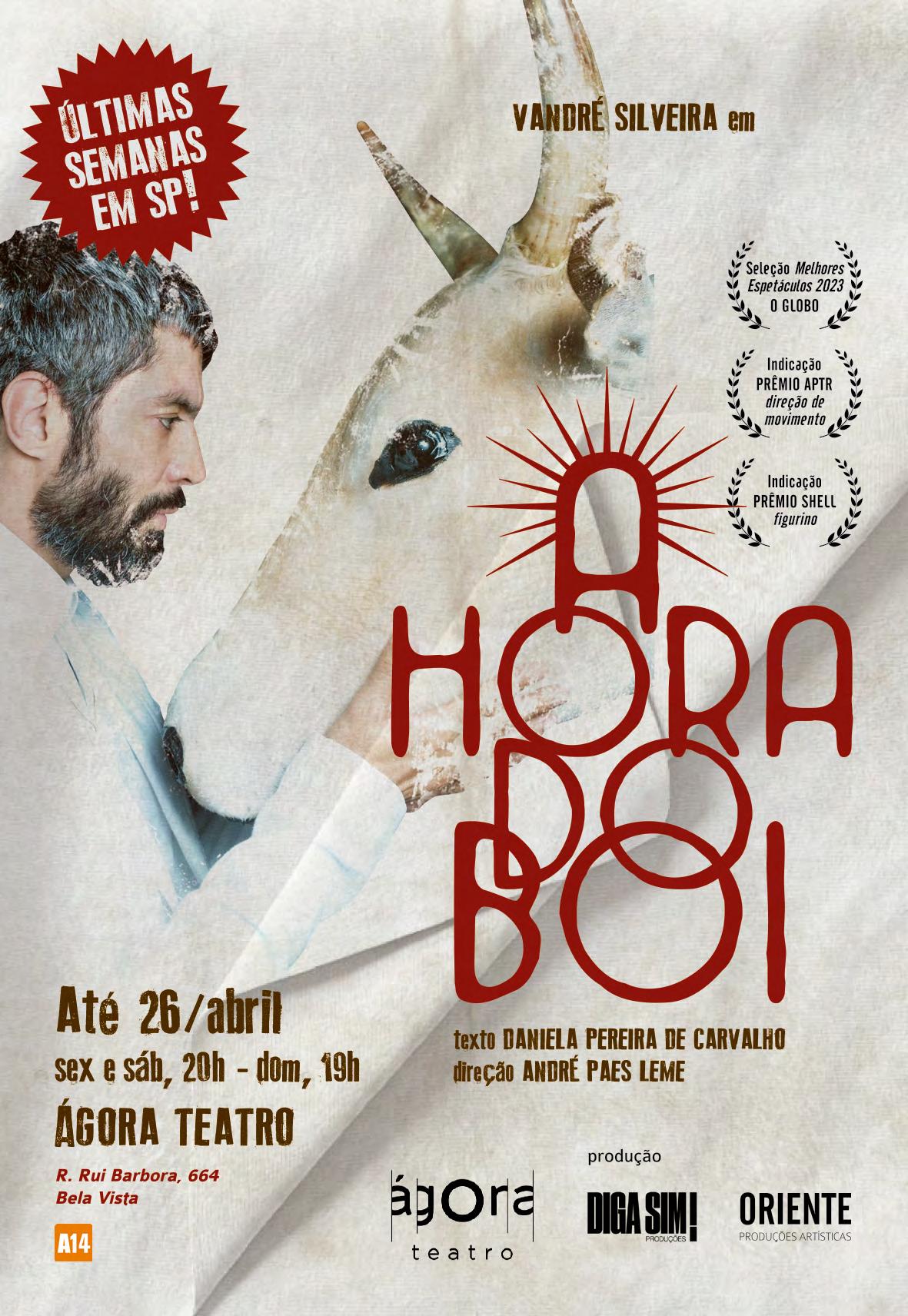 ANo meio de uma arena, que ora é rodeio, ora é o centro de um sítio, os personagens, à mesa de jantar ou prestes a domar um touro brabo, enfrentam-se na tentativa de desvendar um país que “rumina” e ao mesmo tempo “agoniza” em busca do próprio destino. Criação: Teatro da Vertigem. Texto: Marcelino Freire. Performers: Andreas Mendes, James Turpin, Mawusi Tulani, Paulo Arcuri, Tenca Silva, Victor Salomão e Vinicius Meloni. Direção: Antonio Araújo. Codireção: Lili Monteiro. Espaço Cultural Elza Soares - Al. Eduardo Prado, 474. Campos Elíseos. Sexta e sábado, 20h; domingo, 18h. R$40. 90min. 16 anos. Até 12/04.