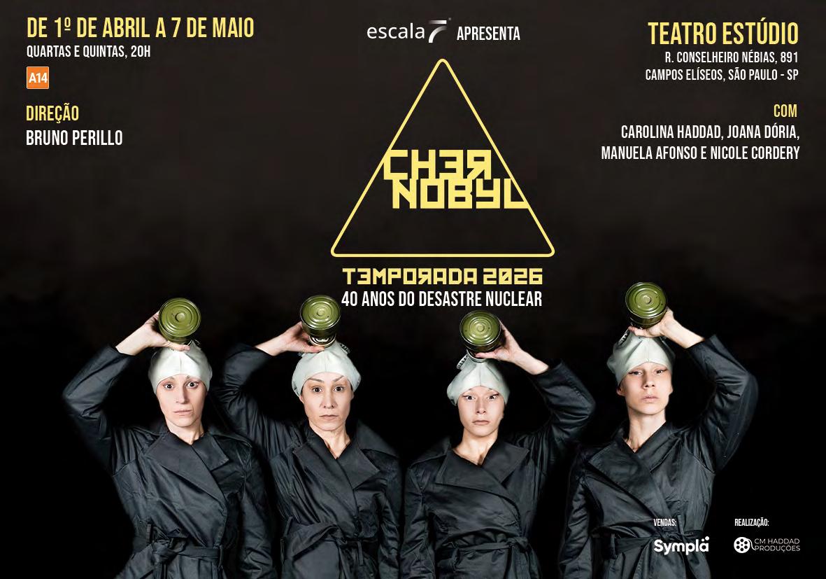 A peça conta a história da boneca Antonia, que testemunha o sofrimento de sua “família” - a menina Hanna, seu irmão Michael, a mãe Elena e o pai Igor -, diante dos efeitos devastadores de um dos maiores desastres nucleares da história. Dramaturgia: Florence Valéro [com excertos do livro “Vozes de Tchernóbil”, de Svetlana Aleksiévitch inseridos por elenco e direção]. Tradução: Carolina Haddad. Elenco: Carolina Haddad, Joana Dória, Manuela Afonso e Nicole Cordery. Direção: Bruno Perillo. Teatro Estúdio - R. Conselheiro Nébias, 891. Campos Elíseos. Quarta e quinta, 20h. R$80. 90min. 14 anos. Estreia 01/04.