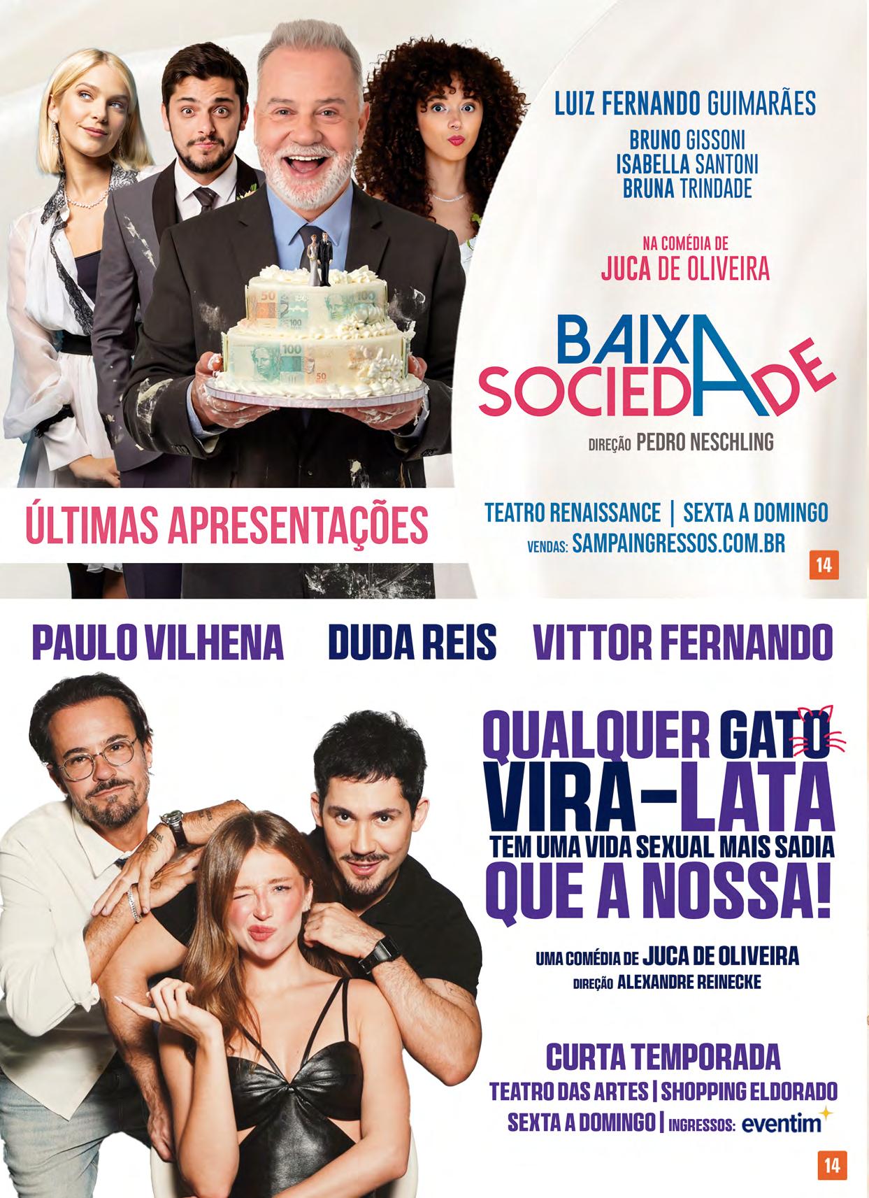 a história se desenrola expondo as contradições, hipocrisias e jogos de poder que sustentam esse sistema. Entre tentativas de acobertamento, alianças improváveis e situações absurdas, a peça revela como a corrupção pode estar mais enraizada e naturalizada do que se imagina. Texto: Juca de Oliveira. Elenco: Paulo Gorgulho, Cassio Scapin, Taumaturgo Ferreira, Sophia Abrahão, Flávia Garrafa e Gabriel Vivan. Direção: Alexandre Heinecke. Teatro das Artes - Av. Rebouças, 3970. Pinheiros. T.3034.0075. Sexta a domingo. 14 anos. Estreia 17/04.