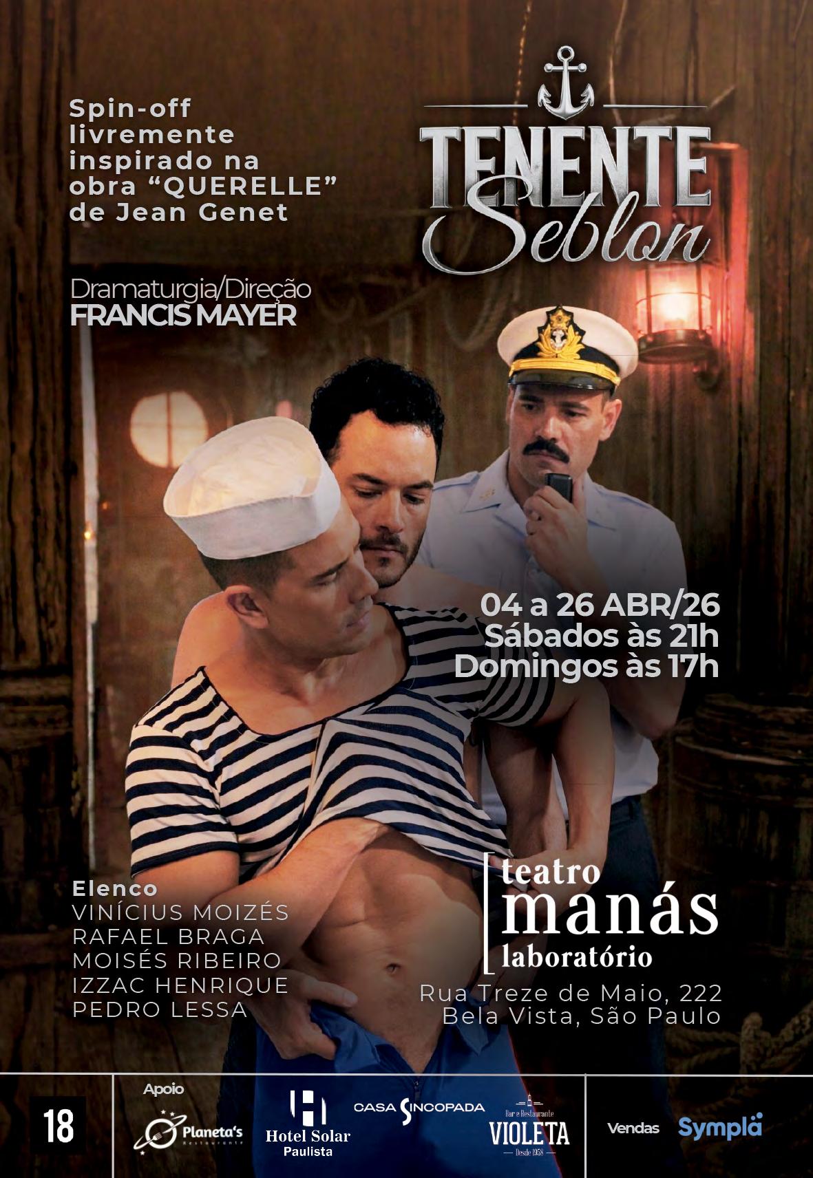 Manifesto coletivo que entrelaça vivências reais do elenco com ficção provocativa. O espetáculo, inspirado na estética do cabaré clássico e em produções como Chicago e Cabaret, transforma dores e resistências de corpos marginalizados em números performáticos. Texto: Criação Coletiva. Elenco: Christian Otero, Dário Varaschin, Davi Jackues, Elix, João Victor Ponge, Marina Bragion, Mariana Moretti, Rodrigo Delcolli, Samir Alves e Vanessa Manga. Direção: Dário Varaschin. Bar Queen – R. Vitória, 826. Arouche. Sexta, 20h30. R$50. 60min. 16 anos. Estreia 17/04.