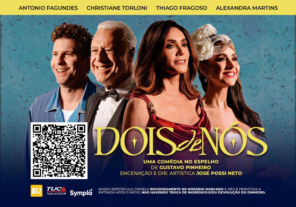 Dois casais de gerações diferentes, se encontram num quarto de hotel. Segredos e mentiras começam a ser revelados trazendo à tona um divertido turbilhão de sentimentos. Texto: Gustavo Pinheiro. Elenco: Antonio Fagundes, Christiane Torloni, Thiago Fragoso e Alexandra Martins. Direção: José Possi Neto. Teatro TUCA – R. Monte Alegre, 1024. Perdizes. T. 3670.8455. Quinta e sexta, 21h; sábado, 20h; domingo, 17h. Entre R$100 e R$350. 90min. 12 anos.