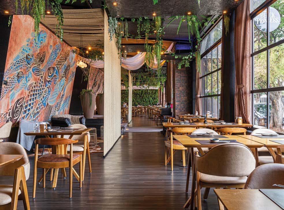 A excentricidade da criação foi o conceito do projeto que teve como tema “O Oceano e sua vida marinha”, utilizando elementos que representassem esses pontos: plantas aquáticas simuladas no teto, onde se encontram placas de madeira que simulam ao produto que embala os Temakis (nori ou algas), cordas de pescadores, grafismos de peixes em temas rupestres, madeira de barcos, enfim elementos que remetem realmente ao estar num passeio gastronômico ao mar e apreciando as culinárias japonesas deste super restaurante.