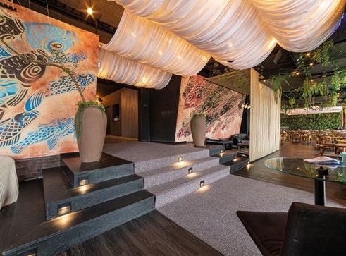 A excentricidade da criação foi o conceito do projeto que teve como tema “O Oceano e sua vida marinha”, utilizando elementos que representassem esses pontos: plantas aquáticas simuladas no teto, onde se encontram placas de madeira que simulam ao produto que embala os Temakis (nori ou algas), cordas de pescadores, grafismos de peixes em temas rupestres, madeira de barcos, enfim elementos que remetem realmente ao estar num passeio gastronômico ao mar e apreciando as culinárias japonesas deste super restaurante.