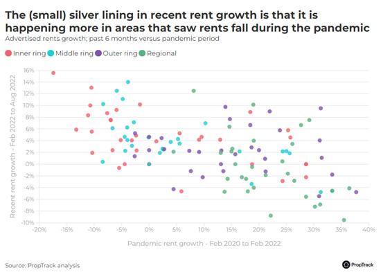值得欣慰的是,目前租金增长非常快的许多地区, 以及移民增加将增加额外需求的地区,都是在疫 情期间租金下降的地区。