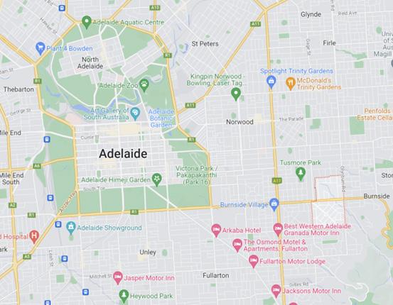 Hazelwood Park距离Adelaide市中心约6.2公里,开 车需11分钟即可到达市中心。公交线路围绕整个 Hazelwood Park,公共交通十分便利。
