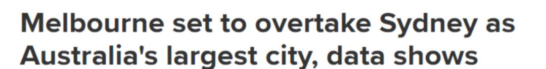 澳洲九号台新闻报道称,墨尔本目前的居民比悉 尼少了约10万。但社会研究员和人口学家Mark McCrindle相信,墨尔本“将在几年内夺得王冠”。