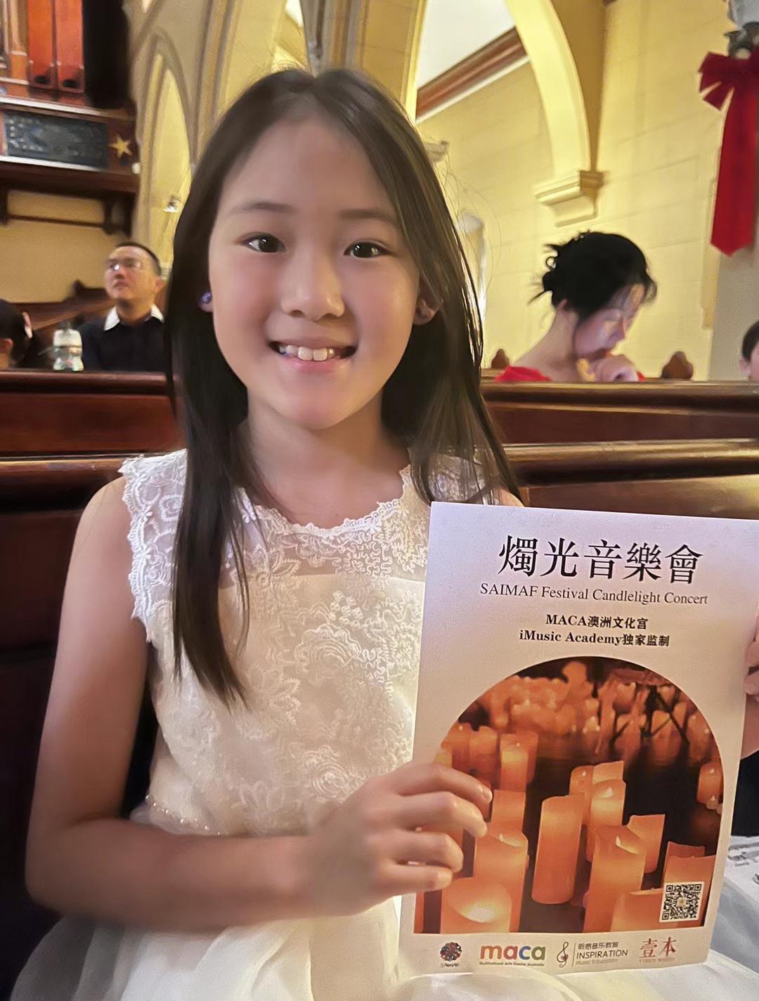 YIBEN LIFESTYLE WEEKLY 生活周刊 些与同伴们一起练琴演奏进步的日子,未来再回 想起,该是多么美好啊! 音乐会渐渐到来尾声,Luna Geng为观众们带来了 《In the hall of the Mountain King》,音乐俏皮却 又庄重,可以感受到Luna Geng对音乐的热爱; 一曲终了,Luna Geng又演奏了一首《Tango for Two》,气场强大,台风稳健;在音乐会的最后, Ruiming Tong小朋友演奏了最后一首曲目《Jingle Bells》,让在场的所有人都感受到了圣诞假期即 将到来的幸福与快乐! 乐声逐渐归于平静,烛光音乐会的全部曲目都已顺 利演奏结束了。这场因热爱而诞生的烛光音乐会, 在孩子们演奏的一首首乐曲中落下了帷幕。在这场 音乐会中,孩子们展示了他们的勇敢、他们的耐心、 他们的热情、他们的个性……他们学会了表达自我、 学会了认真聆听、学会了追求“唯美”。 最后,MACA文化宫的负责人Mina Zhang表达了 对孩子们的期盼,对老师、到场嘉宾的感谢,她说: “这是给可爱孩子们准备的浪漫烛光音乐会,是 送给他们这一年音乐学习的结业礼物。希望学生 们日后想起在iMusic的音乐会,每一场都是记忆