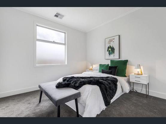 位置优越的三层联排别墅 步行可至公共交通、购物区 带自动面板升降门的底层车库 车道上的额外停车位 2 间卧室,均为双人床