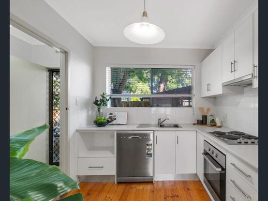 两间卧室均设有内置衣柜,并铺有地毯 浴室经过了翻新,设有无框淋浴,洁白的梳妆台和大镜子 厨房配备了不锈钢器具,包括洗碗机,燃气灶具,烤箱和抽油烟机
