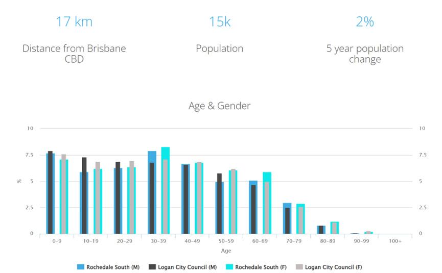 Rochedale South的面积约为6.2平方公里。2011年,Rochedale South的人口为14,996人。到2016年,人口 为15,287。在此期间,该地区的人口增长率为1.9%。Rochedale
