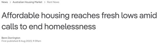 2023年无家可归周于8月7日至13日举行,主 题是“是时候结束无家可归了”。然而,Launch Housing首席执行官Bevan Warner表示,澳 大利亚的无家可归者只会越来越严重。“最近的 人口普查证实,几乎每个年龄段的情况都在恶 化,”Warner说。