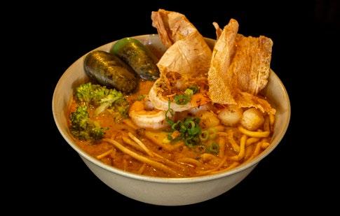 HASU主理人:我们有几道菜是客人几乎每桌必点 的:刺身盖浇饭(Chirashi Don)、Laksa 和马 来炒饭(Nasi Goreng)。