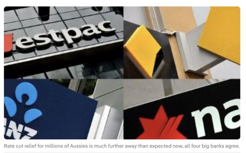 “人们仍然预计未来利率会下降,但最新的通胀 数据是一个挫折。这已将澳洲联储的下一次现金 利率下调推迟了大约六个月——最有可能在明年 5 月左右,“罗伯逊先生说。CBA、西太平洋银行 和 NAB 预计短期内不会有任何下跌趋势,排除了 2026 年初的可能性。NAB