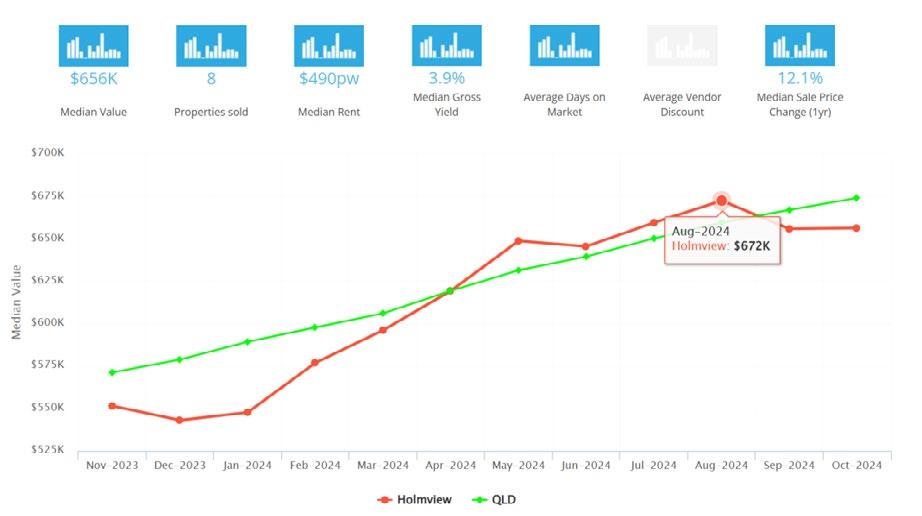 在过去的12个月里,Holmview已经卖出了8套独栋房屋,售价中位数为$656K,同比增长12.1%。