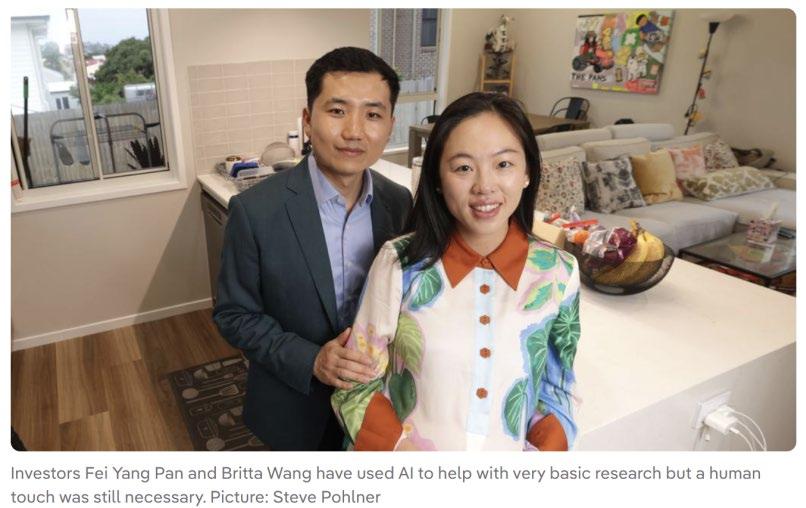 投资者 Britta Wang 和 Fei Yang Pan 已利用人 工智能来增强他们的投资组合,但警告说仍然需 要人性化。这对夫妇在卧龙岗购买了他们的第一 笔投资后,正在寻找他们的第三笔投资,并使用 ChatGPT 进行数据处理。