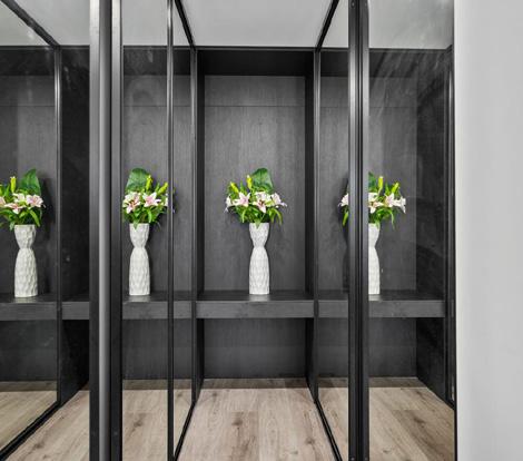 盆洗手台,frameless 淋浴屏简约通透,步入式衣 橱以定制柜体实现井然有序的收纳体验,电动智 能窗帘轻启之间,光影柔和流转,传递着无尽的 舒适自在。