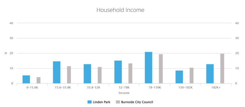 Linden Park的大小约为0.8平方公里。2011年Linden Park的人口为1887人。到2016年,人口为2007人,在此 期间该地区的人口增长率为6.4%。Linden Park的主要年龄组是10-19岁。Linden Park的家庭主要是有子女的 夫妇,每月可能偿还1800-2399澳元的抵押贷款还款。一般来说,Linden Park的居民从事专业职业。2011 年,Linden Park 75%的房屋是自有住房,而2016年为74.5%。(资料来源:澳大利亚统计局)