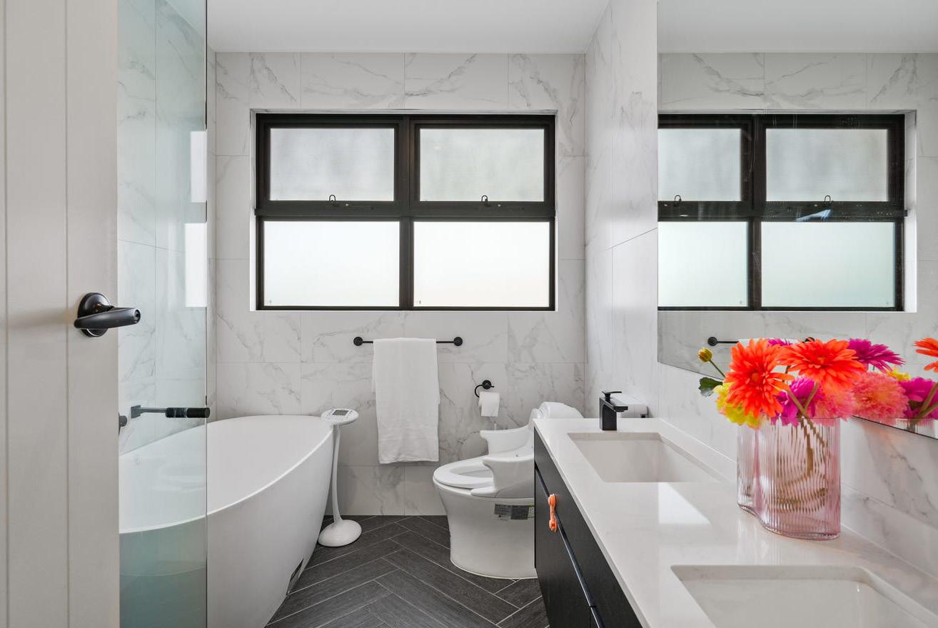 -主套房亮点:独立浴缸、双台盆设计、frameless 淋浴屏、定制步入式衣橱、电动智能窗帘