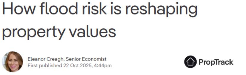 本文参考了“PropTrack气候委员会房产价值洪 水风险报告”的研究成果。该报告是首次对住宅房 地产市场如何应对日益加剧的洪水风险进行的全国 性规模分析。