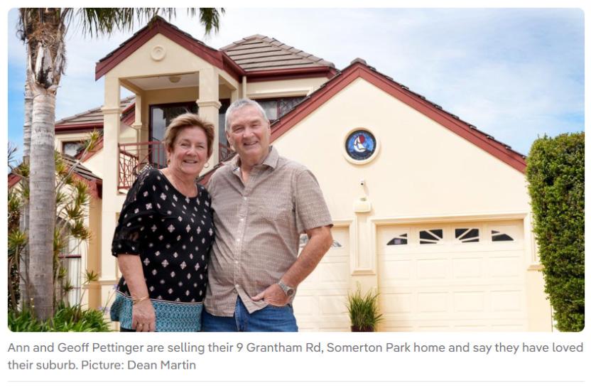 71 岁的Geoff和 70 岁的Ann Pettinger夫妇正 通过Gentilcore先生出售他们自 2002 年起就拥 有的位于Somerton Park 9 号的住宅。他们表示, 近年来房价大幅上涨。Pettinger先生表示:“这