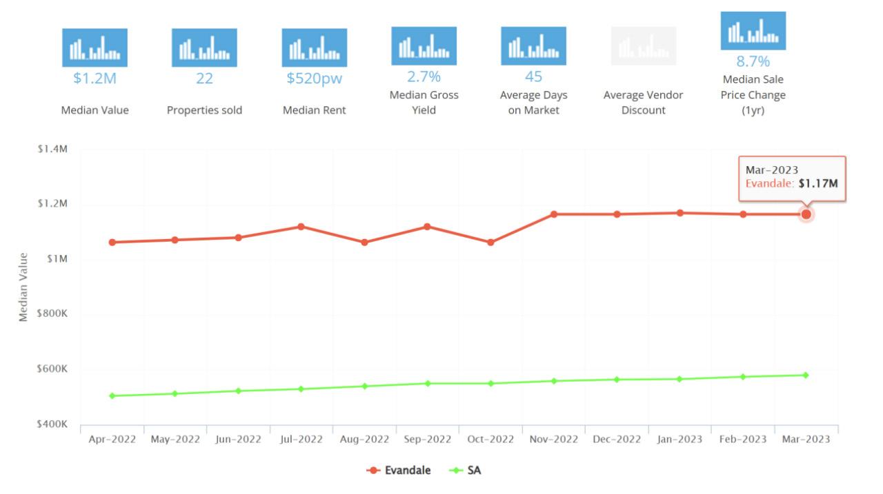 关于学区情况/学校介绍、人口构成、行情观察: https://www.propertyvalue.com.au/suburb/evandale-5069-sa#Unit