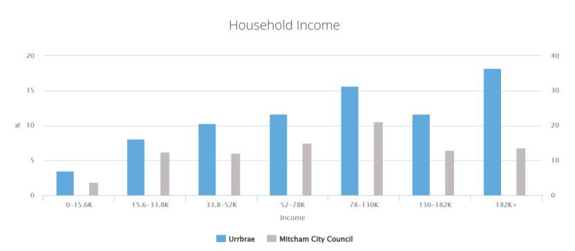 Urrbrae的面积约为1.7平方公里。2011年,Urrbrae的人口为970人。到2016年,人口为955人,在此期间该 地区的人口下降率为1.5%。Urrbrae的主要年龄组是50-59岁。Urrbrae的家庭主要是有孩子的夫妇,每月可 能偿还1800至2399澳元的抵押贷款。一般来说,Urrbrae的人从事专业职业。2011年,Urrbrae有88% 的房 屋是自住房屋,而2016年为86.7%。(资料来源:澳大利亚统计局)