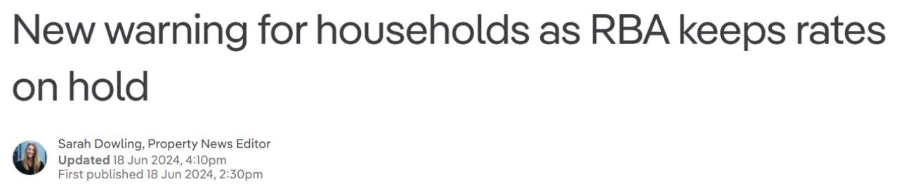 澳央行维持利率不变,对家庭发出新的警告