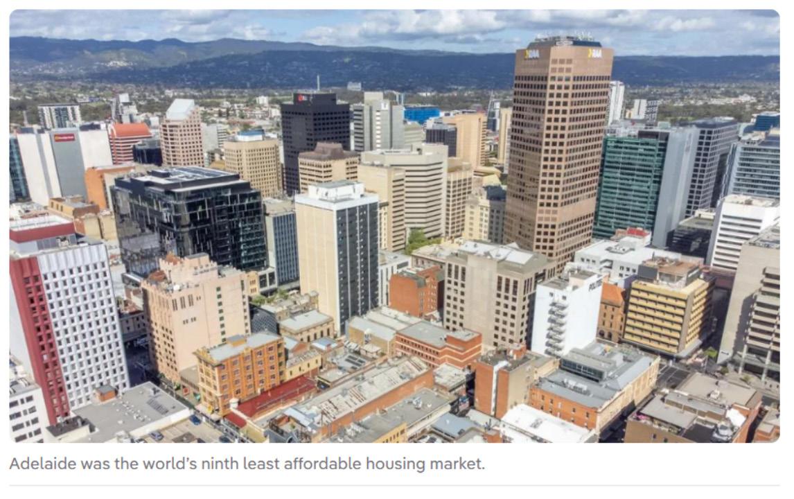 墨尔本在全球最难以负担的城市中排名第七,阿 德莱德排名第九。和悉尼一样,这两座城市也被 贴上了“难以承受”的标签。