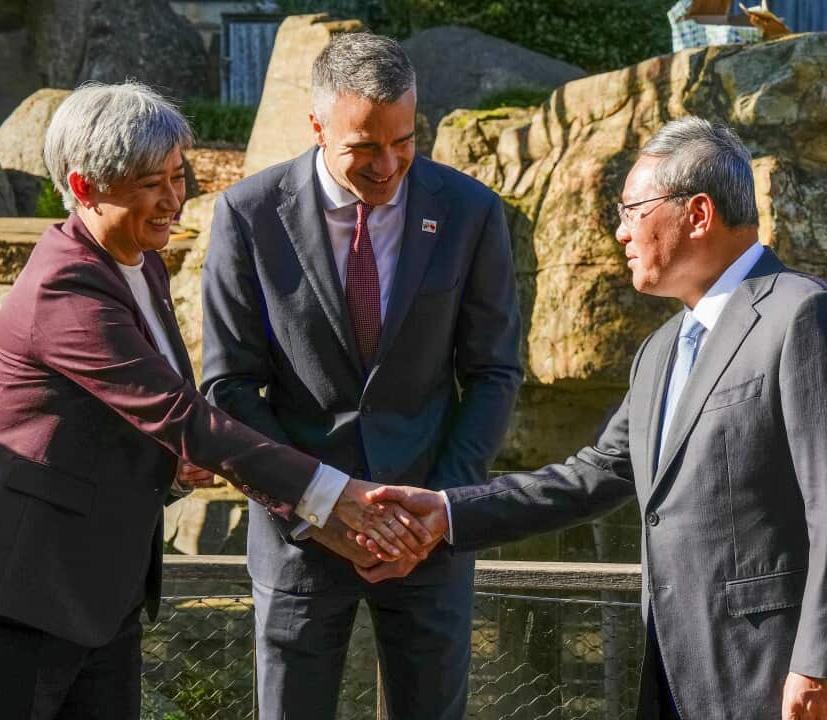 6月16日上午,李强总理来到了阿德莱德动物园, 考察中澳大熊猫保护合作研究工作。阿德莱德动 物园是澳大利亚唯一拥有大熊猫的动物园。南澳 州州督孙芳安、州长马思诺,澳大利亚外交部长 黄英贤和贸易部长法瑞尔陪同考察。