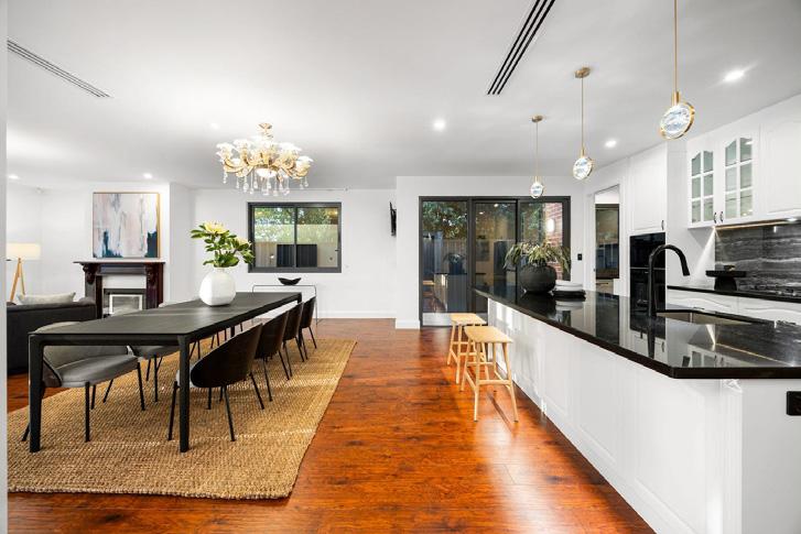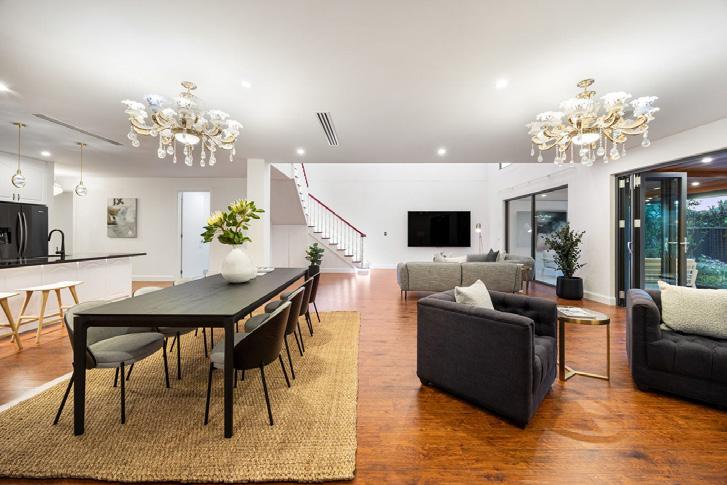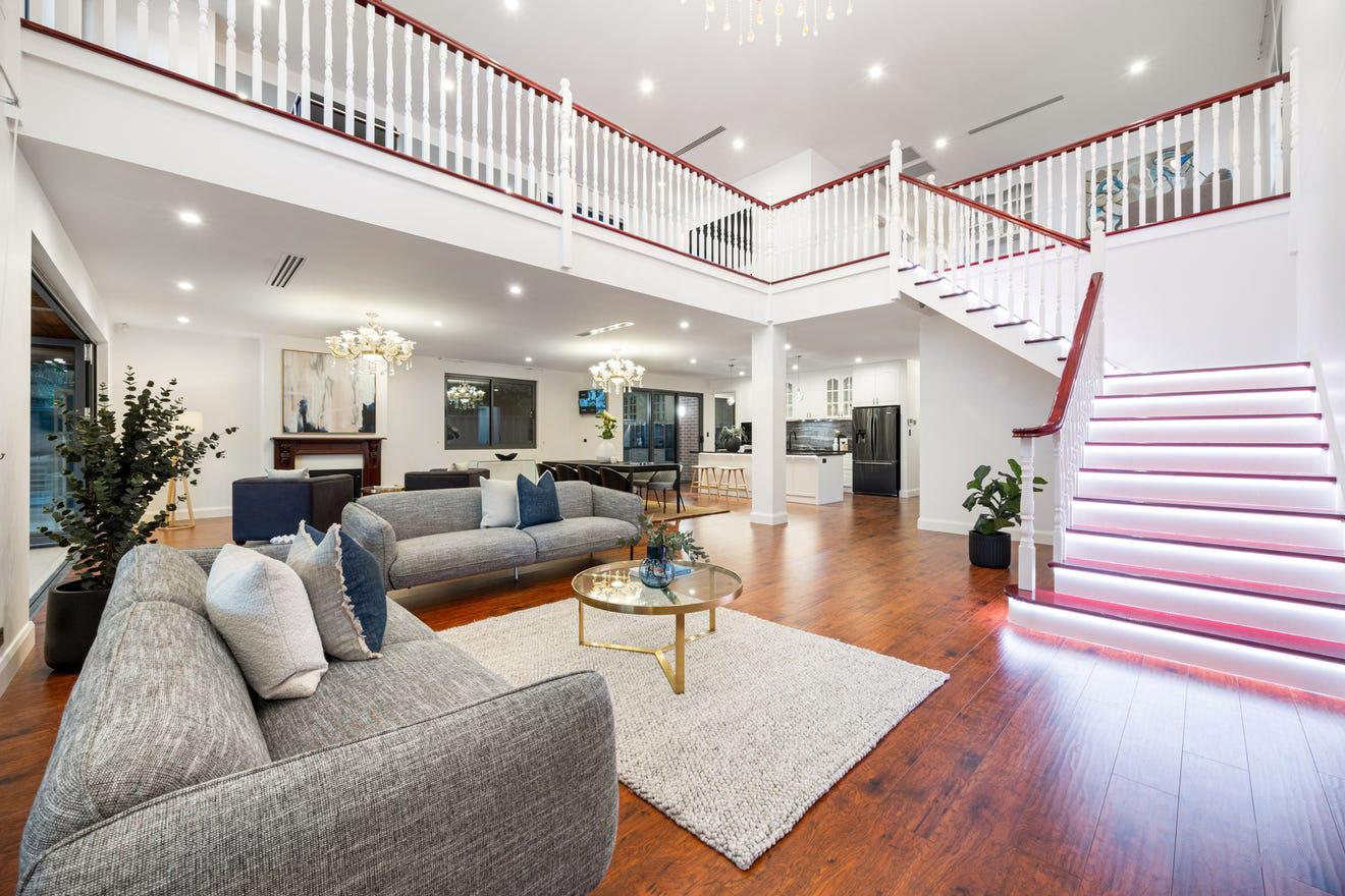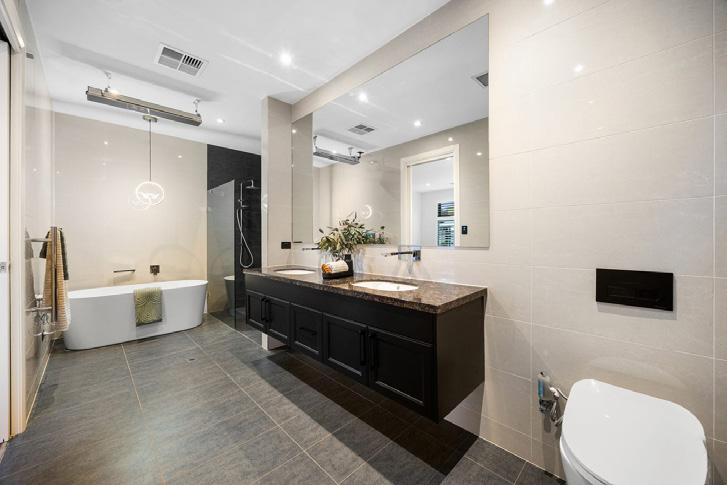 在Cumberland Park绿荫掩映的Hill Avenue4 号,一栋沙石立面的现代府邸静静矗立。它并非一 座冰冷的建筑——温暖的石材充分吸收了阿德莱德 的阳光,与屋舍周围的绿意和谐相融,沉稳的黑色 铁艺大门之后,是一个关于空间、光影与家庭故事 的序章。这处精心打造的居所,将超过500平方米 的宏大尺度,巧妙地转化为生活的温情与诗意。它 为未来的主人准备了五间足以安放身心的卧室、三 间明洁的卫浴,以及一个宽敞的双车位车库,每一 个角落都为宏大家庭的梦想与日常的欢笑预留了充 足的空间,静候着新篇章的开启。