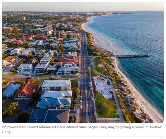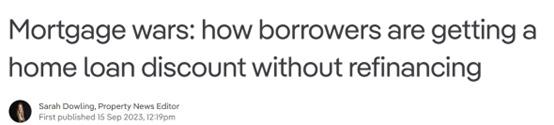 但对于那些在过去18个月里一直自满的借款人来 说,节省下来的钱可能更大。澳大利亚央行的数 据显示,在第一次现金利率上调之前,2022年4 月,自住业主可变住房贷款的平均利率为2.86%。 如果他们的贷款人完全通过了每次加息,他们的 抵押贷款利率现在将达到6.86%,比市场上最具 竞争力的利率高出一个多百分点。