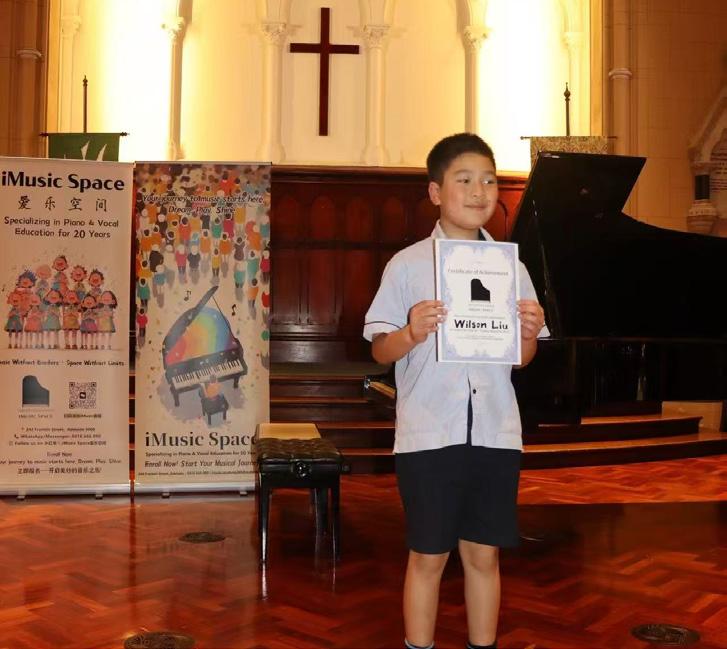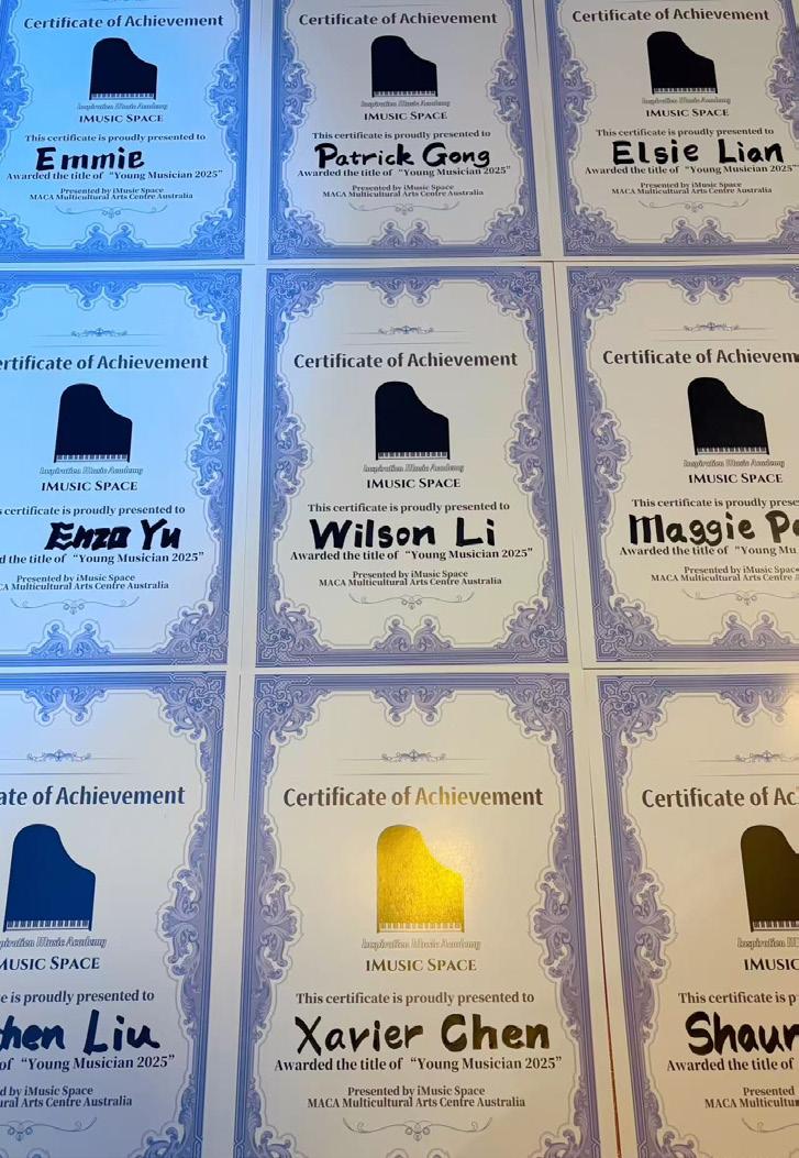 与此同时,常规的教学与激励也并未停歇。那一张 张印有孩子们名字的“Certificate of Achievement” (成就证书),是对他们一年来努力学习的最好 印章,也是2025年音乐成长路途上最美好的纪念。 每一个勇敢挑战自己成功的孩子,都获得了一份由 MACA澳洲多元文化中心授权颁发的iMusicSpace爱 乐空间2025珍藏版音乐会证书,我们会鼓励孩子们 收集每一年的证书,这也是他们成长中独一无二不 可复制的音乐成就。结束时候,老师们还为孩子准 备了他们喜爱的各类好玩的气球礼物,在那些在离 场时陆陆续续溜走的小小身影里,我们看得到音乐 会后带着满足的笑容,这也成为了这场音乐会最真 实、最可爱的驻脚,真的是太幸福了!